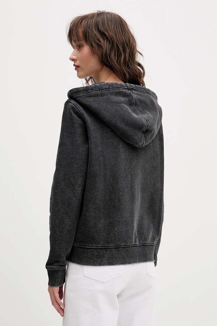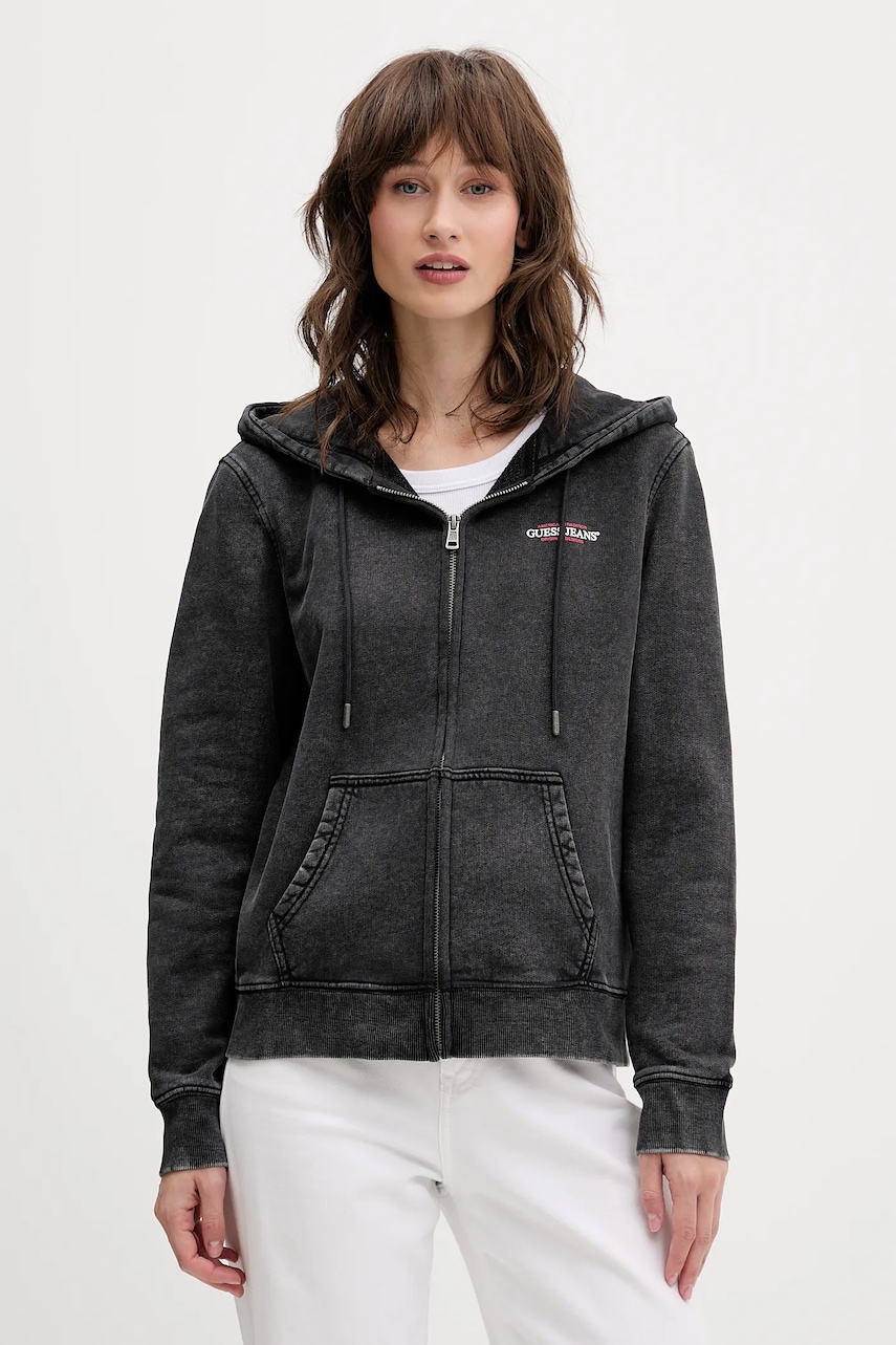 Guess Jeans bluza bawełniana damska kolor szary z kapturem z nadrukiem W5BQ14 KCPR1
