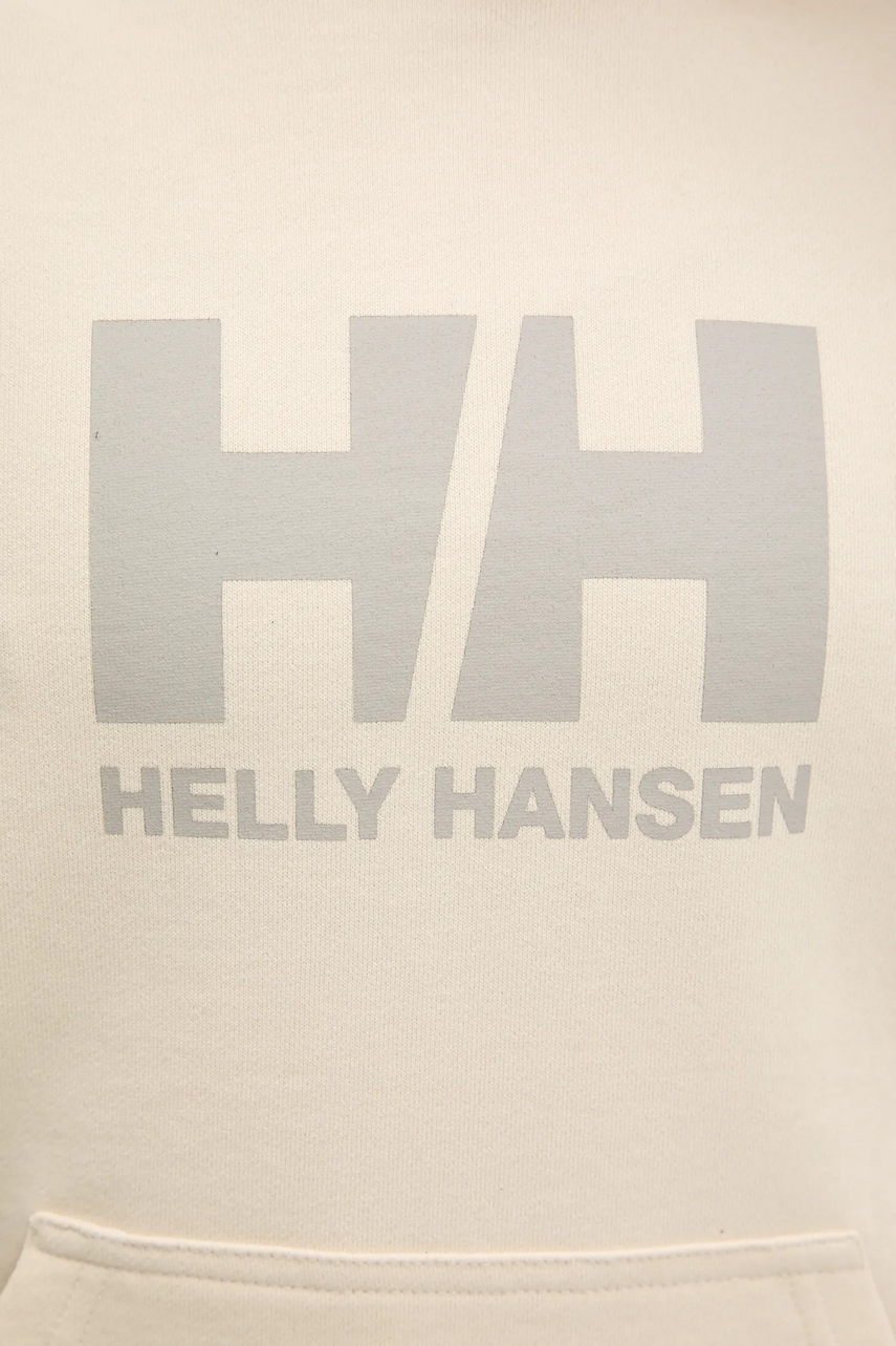 Helly Hansen bluza bawełniana HH LOGO 2.0 damska kolor beżowy z kapturem z nadrukiem 34460