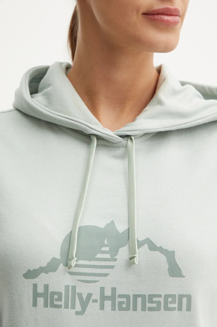 Helly Hansen bluza NORD GRAPHIC damska kolor zielony z kapturem z nadrukiem 62981