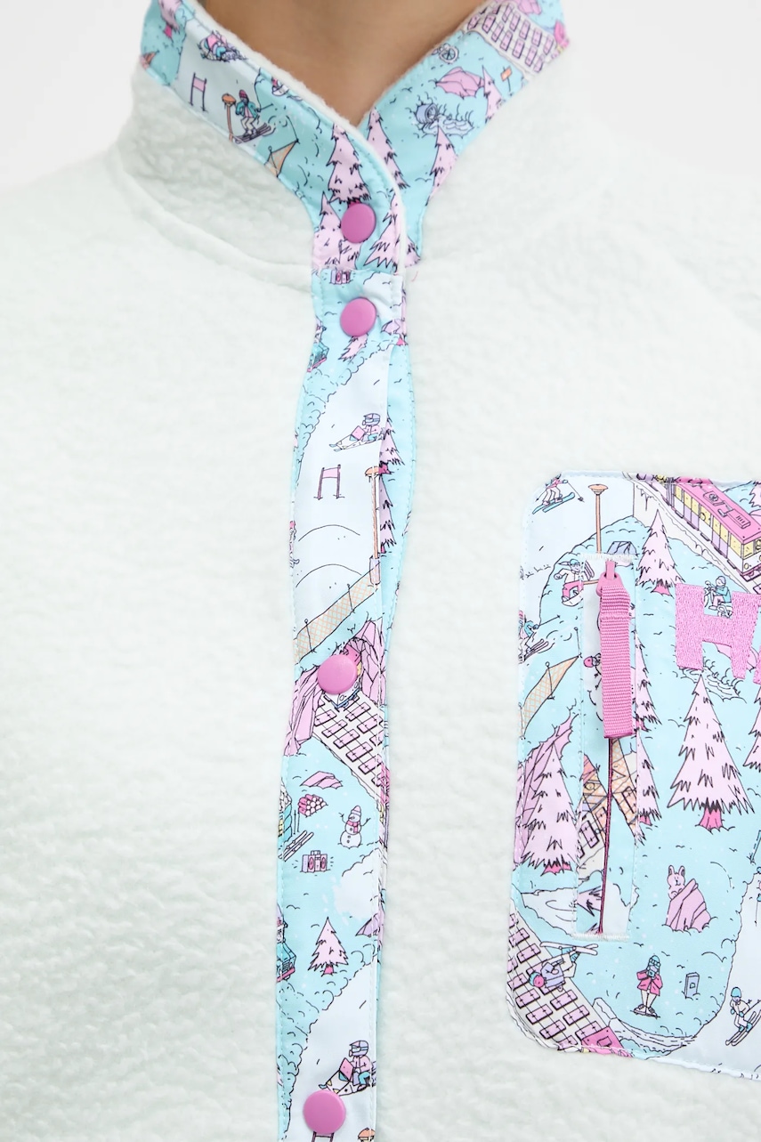 - Ten model został częściowo wykonany z poliestru z recyklingu. - Model wykonany z izolującego od zimna materiału polarowego z gładką powierzchnią zewnętrzną i przyjemną dla skóry, miękką stroną wewnętrzną. - Luźny krój zapewniający pełną swobodę ruchów. - Wygodne zapięcie na zatrzaski ułatwia zakładanie i zdejmowanie. - Podwyższony kołnierz gwarantuje dodatkową ochronę przed chłodem. - Rękaw raglanowy, dzięki swojej konstrukcji, zapewnia większą swobodę ruchu. - Rękawy i dolna krawędź zakończona ściągaczami chroniącymi przed niekorzystnymi warunkami atmosferycznymi. - Zapinana na suwak kieszonka na piersi pozwala bezpiecznie przechować telefon lub niezbędne drobiazgi. - Dwie wsuwane kieszenie boczne. - Długość rękawa(mierzona od kołnierza): 77 cm. - Długość: 63 cm. - Szerokość pod pachami: 56 cm. - Wymiary podane dla rozmiaru: S.