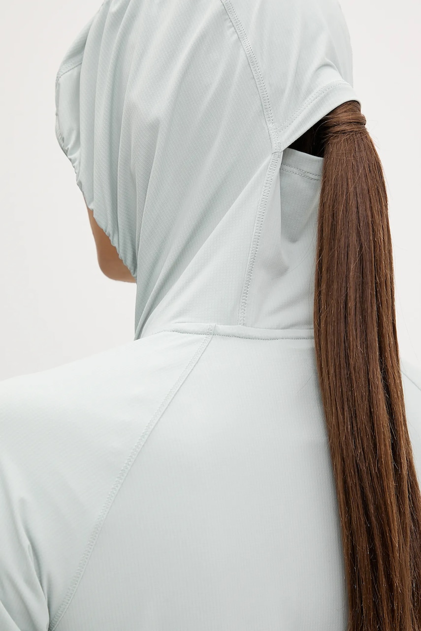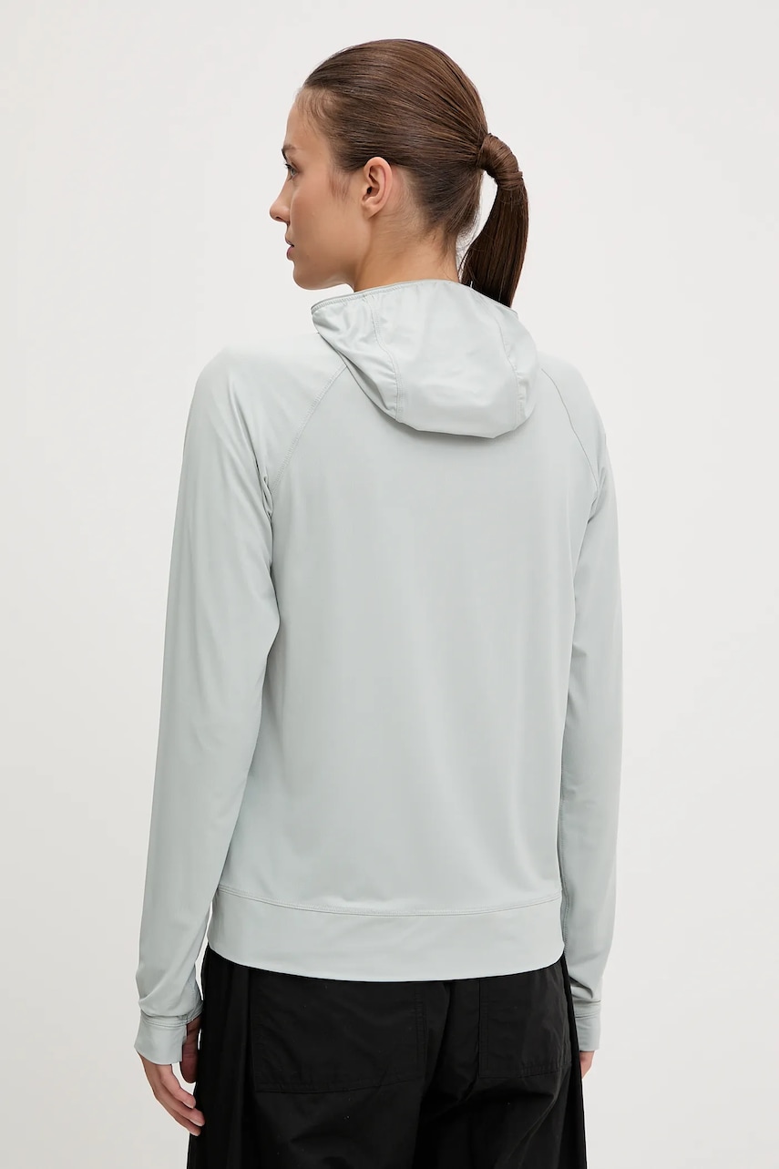 - Produkt zawiera materiały z włókien pochodzących z recyklingu. - Model z certyfikatem Bluesign® Standart. Produkt z tym oznaczeniem jest bezpieczny dla konsumenta, a jego produkcja odbywa się z materiałów pochodzących z odpowiedzialnych źródeł i z minimalnym wpływem na środowisko. - Materiał chroniący przed słońcem, posiadający ochronę przeciwsłoneczną na poziomie UPF 50. - Rękaw raglanowy, dzięki swojej konstrukcji, zapewnia większą swobodę ruchu. - U dołu rękawów otwory na kciuk, które osłaniają dłonie i zapobiegają podwijaniu się rękawów. - Podwyższony kołnierz gwarantuje dodatkową ochronę przed chłodem. - Zapięcie na krótki suwak ułatwia sprawną wentylację oraz swobodne ubieranie i ściąganie. - Dopasowany, zabudowany kaptur zapewnia osłonę przed niepogodą. - Zapinana kieszeń umieszczona w bocznym szwie, ułatwia bezpieczne przechowywanie drobiazgów. - Rękawy i dolna krawędź zakończona ściągaczami chroniącymi przed niekorzystnymi warunkami atmosferycznymi. - Długość: 62 cm. - Szerokość pod pachami: 52 cm. - Wymiary podane dla rozmiaru: S.