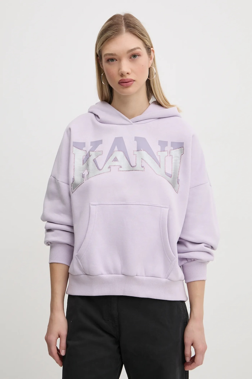 Karl Kani bluza damska kolor fioletowy z kapturem z nadrukiem 61210049