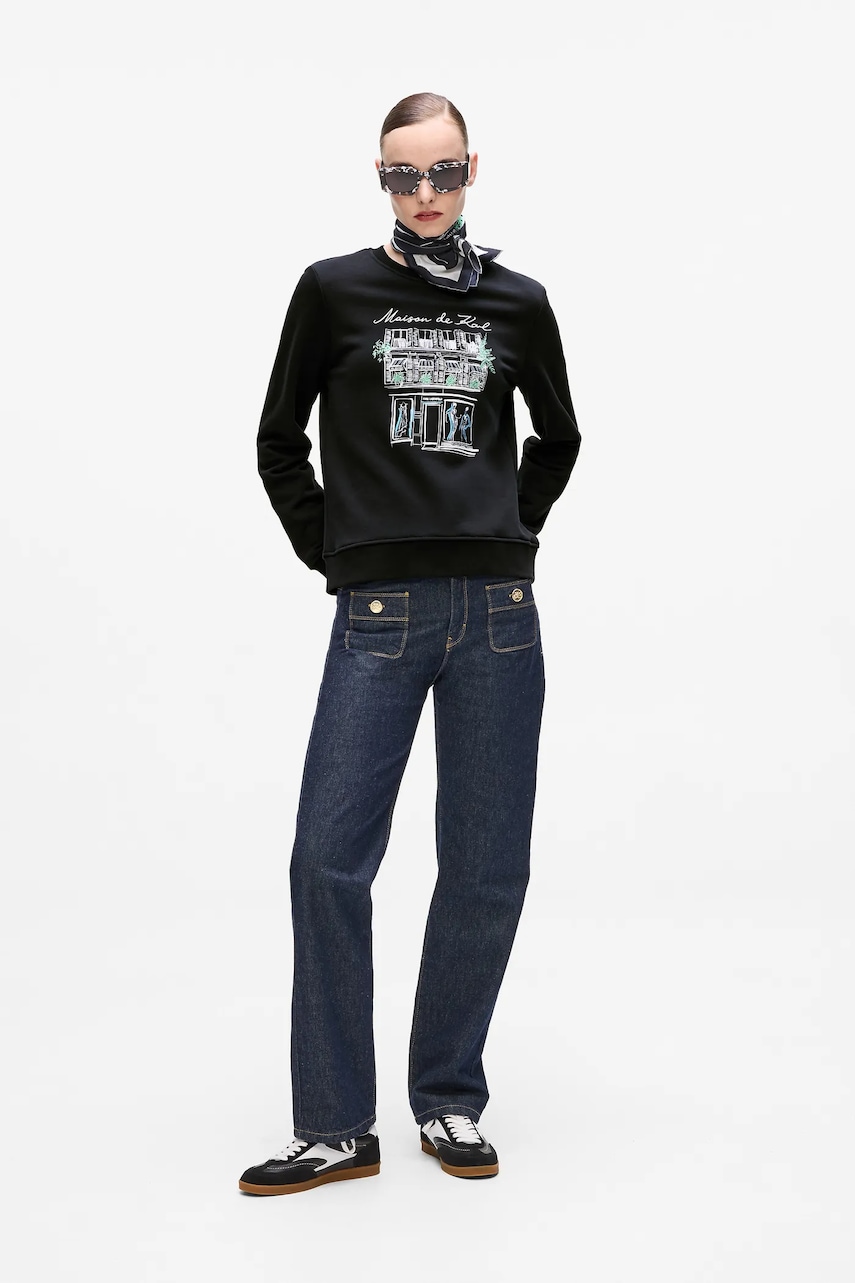 Karl Lagerfeld bluza bawełniana damska kolor czarny z nadrukiem A4W20065