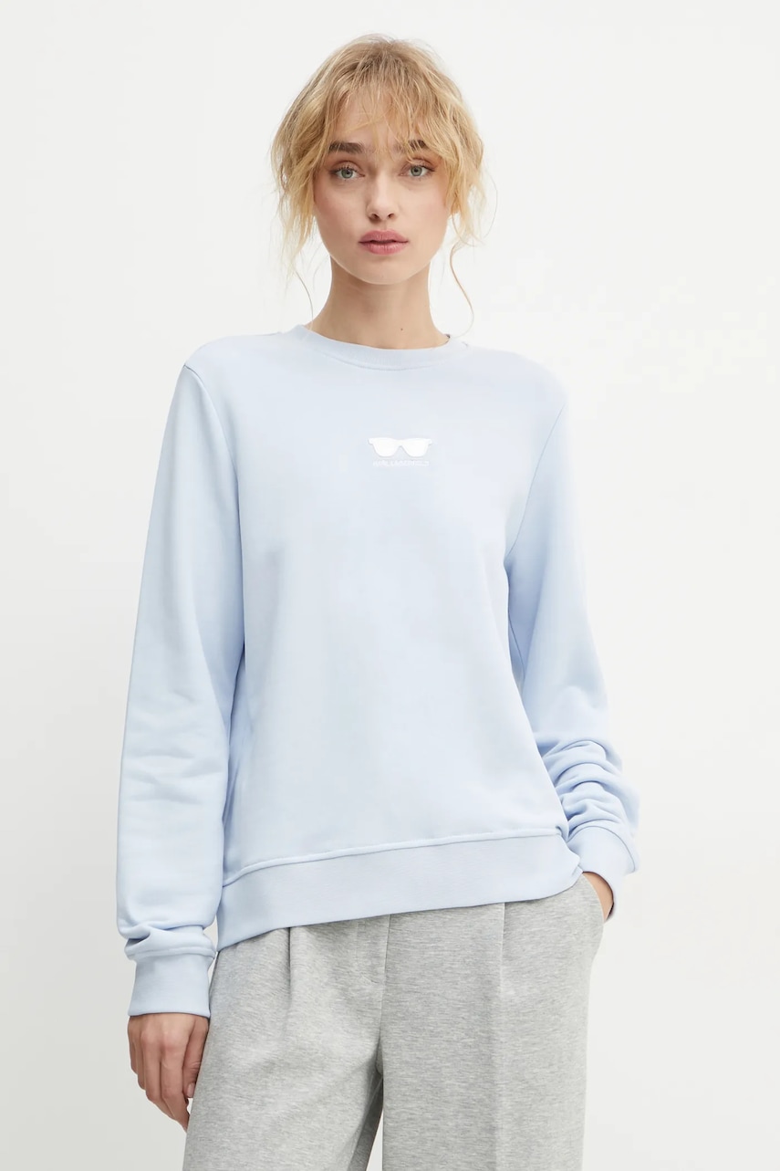 Karl Lagerfeld bluza bawełniana damska kolor niebieski z aplikacją A1W20009