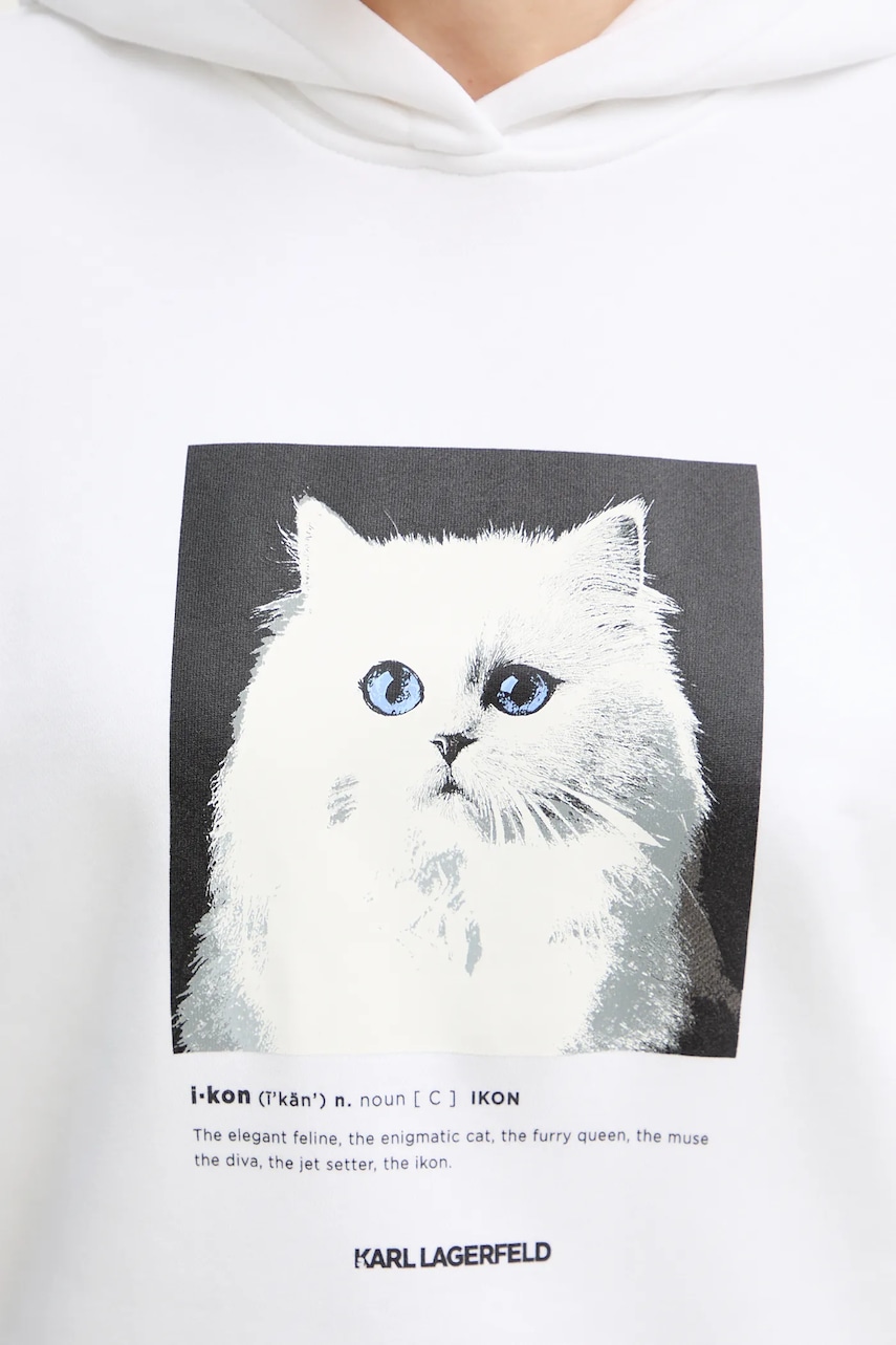 Karl Lagerfeld bluza damska kolor biały z kapturem z nadrukiem B1W20012