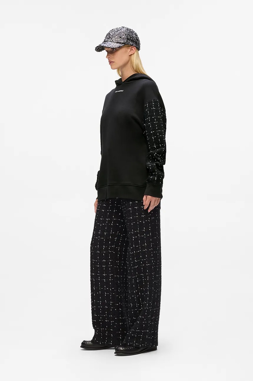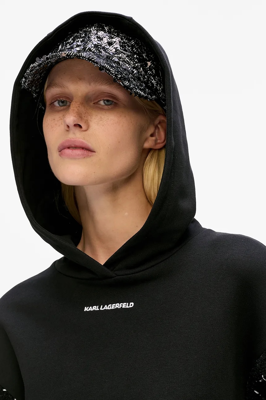 Karl Lagerfeld bluza z dodatkiem wełny damska kolor czarny z kapturem z aplikacją A4W20064