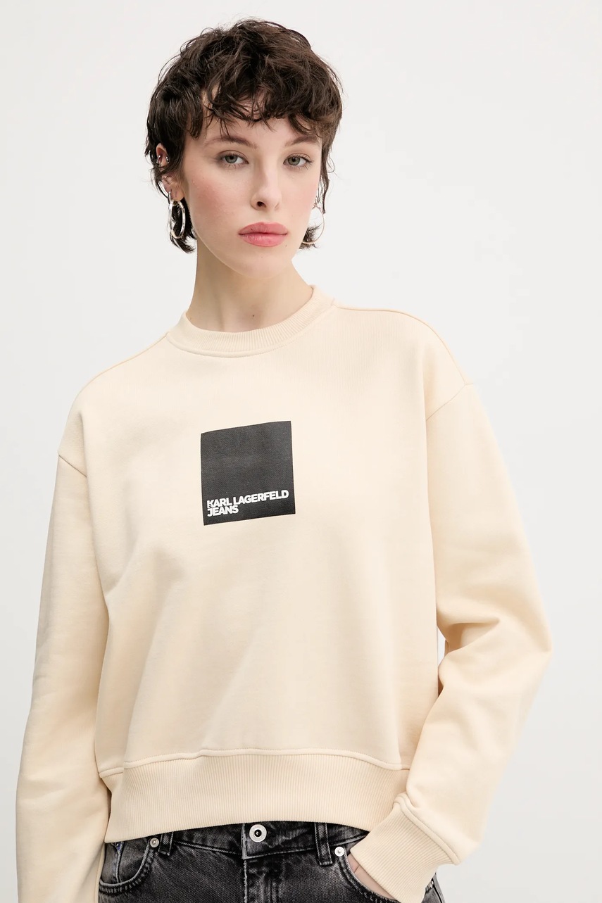 Karl Lagerfeld Jeans bluza bawełniana damska kolor beżowy z nadrukiem A1W20006