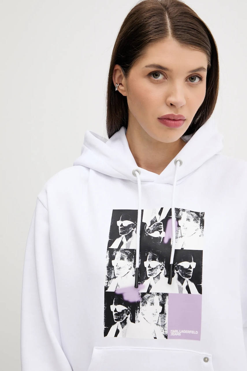 Karl Lagerfeld Jeans bluza bawełniana damska kolor biały z kapturem z nadrukiem A3W20042
