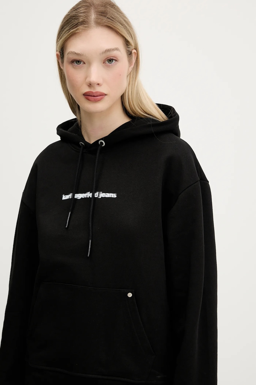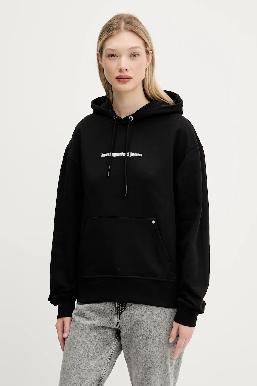 Karl Lagerfeld Jeans bluza bawełniana damska kolor czarny z kapturem z nadrukiem A3W20038
