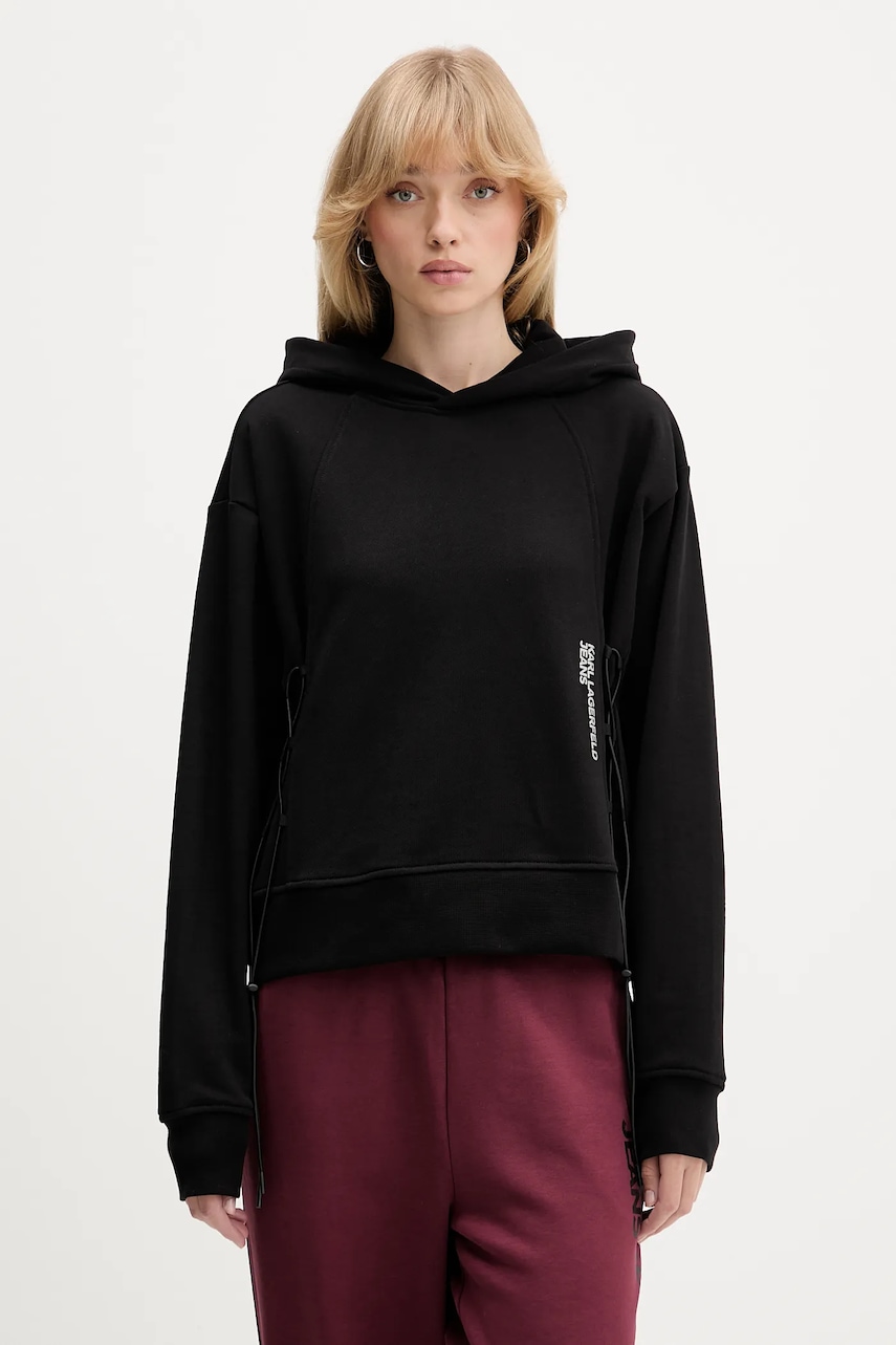 Karl Lagerfeld Jeans bluza bawełniana damska kolor czarny z kapturem z nadrukiem A4W20005
