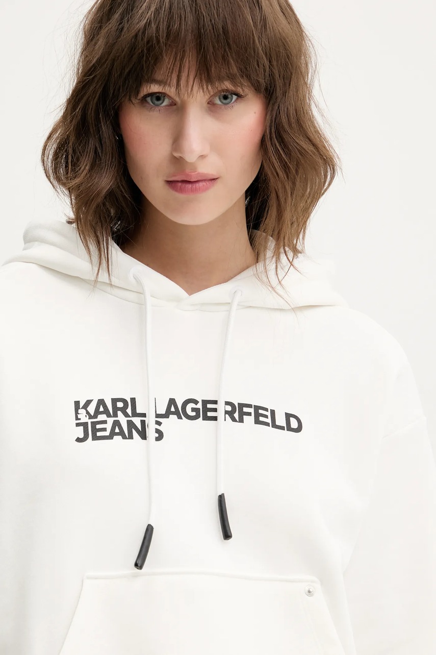 Karl Lagerfeld Jeans bluza damska kolor biały z kapturem z nadrukiem A2W20053