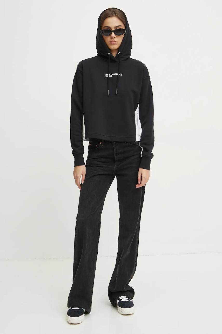 Karl Lagerfeld Jeans bluza damska kolor czarny z kapturem z nadrukiem A1W20017