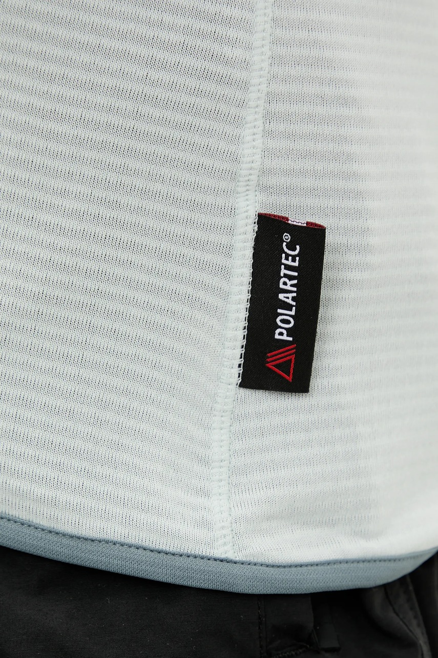- Produkt zawiera materiały z włókien pochodzących z recyklingu. - Model z certyfikatem Bluesign® Standart. Produkt z tym oznaczeniem jest bezpieczny dla konsumenta, a jego produkcja odbywa się z materiałów pochodzących z odpowiedzialnych źródeł i z minimalnym wpływem na środowisko. - Produkt wyprodukowany zgodnie z założeniami Fair Wear Foundation, organizacji zrzeszającej marki odzieżowe tworzące produkty w bardziej zrównoważony i etyczny sposób. Produkty oznaczone znakiem Fair Wear powstały w fabrykach, które pozytywnie przeszły zewnętrzny audyt i zapewniają pracownikom odpowiednie warunki pracy oraz wynagrodzenie. - Model wykonany z innowacyjnego materiału Polartec® Power Grid™. Dzięki jego specjalnej strukturze, materiał ten zapewnia optymalne ocieplenie, wysoką oddychalność, doskonale odprowadza wilgoć, a jednocześnie zachowuje niewielką wagę. - Rękaw raglanowy, dzięki swojej konstrukcji, zapewnia większą swobodę ruchu. - Podwyższony kołnierz gwarantuje dodatkową ochronę przed chłodem. - Zapięcie na krótki suwak ułatwia sprawną wentylację oraz swobodne ubieranie i ściąganie. - Zapinana na suwak kieszeń na piersi ułatwia przechowywanie drobiazgów. - Płaskie szwy chronią skórę przed otarciami i podrażnieniami oraz zapewniają wysoki poziom komfortu użytkowania podczas aktywności. - Gramatura produktu: 164 g. - Długość: 65 cm. - Szerokość pod pachami: 44 cm. - Wymiary podane dla rozmiaru: S.