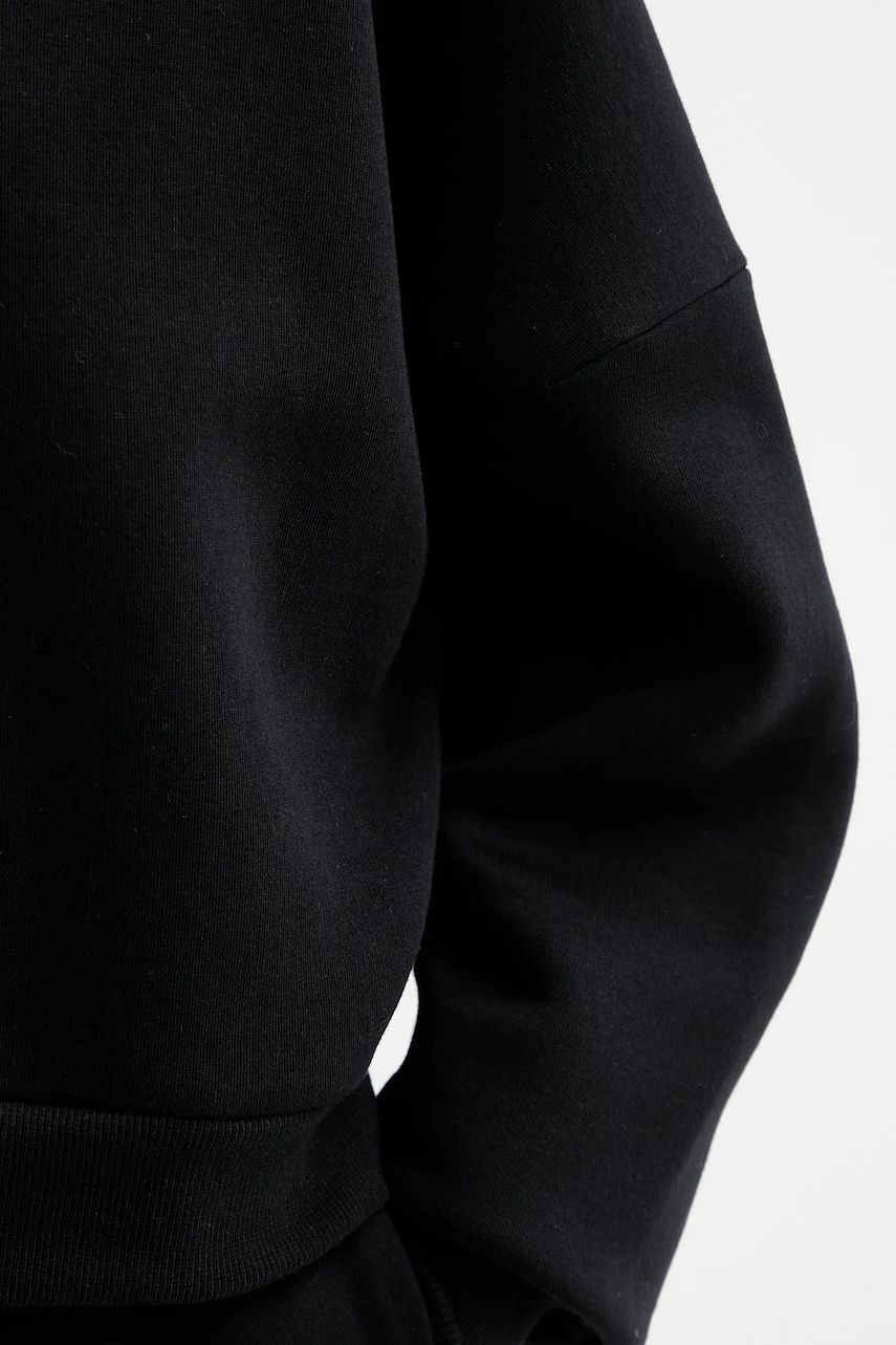- Fason relaxed. - Krój rękawa z obniżoną linią ramion nie ogranicza mobilności. - Rękawy i dolna krawędź wykończona wygodnym, elastycznym ściągaczem. - Długość rękawa(mierzona od kaptura): 78 cm. - Długość: 53 cm. - Szerokość pod pachami: 71 cm. - Wymiary podane dla rozmiaru: S.