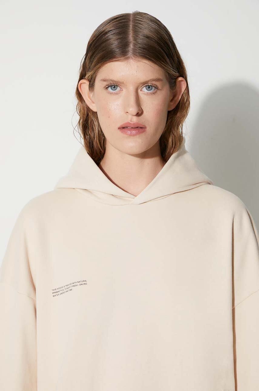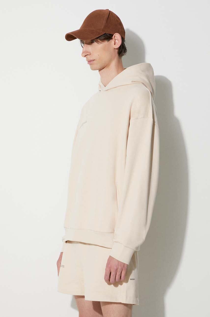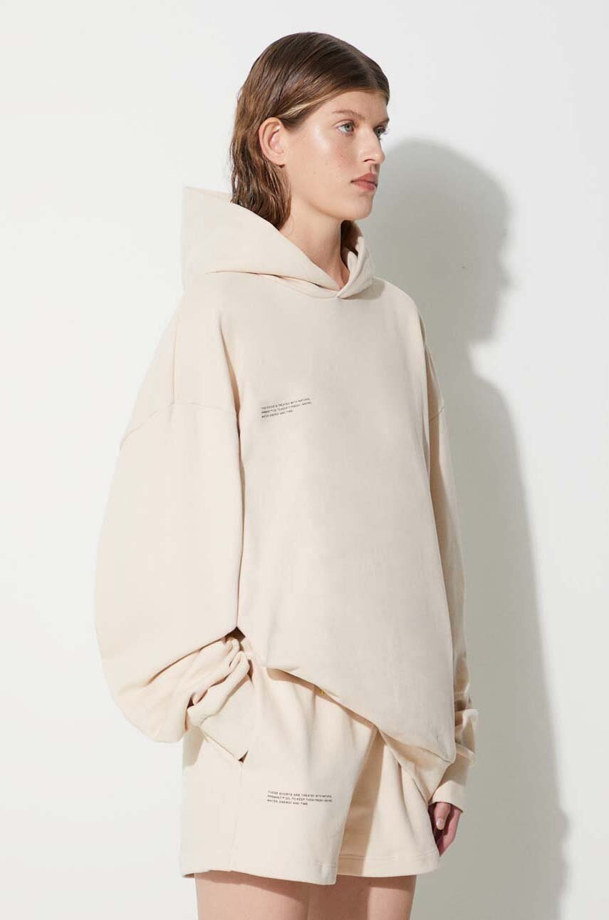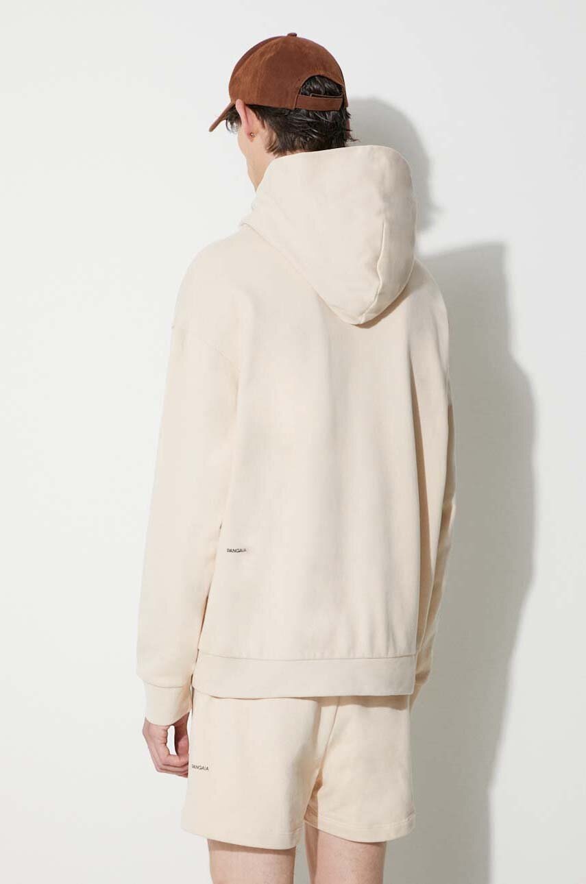Pangaia bluza bawełniana kolor beżowy z kapturem z nadrukiem