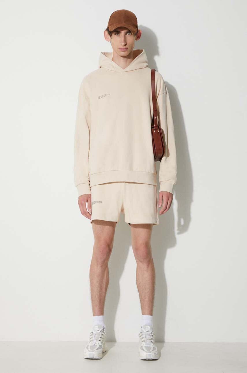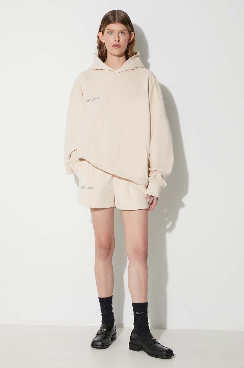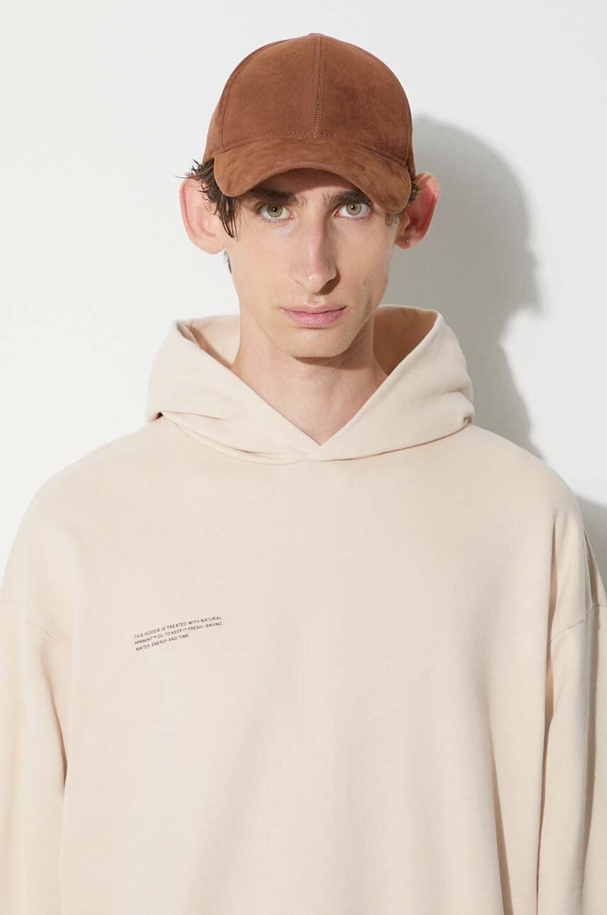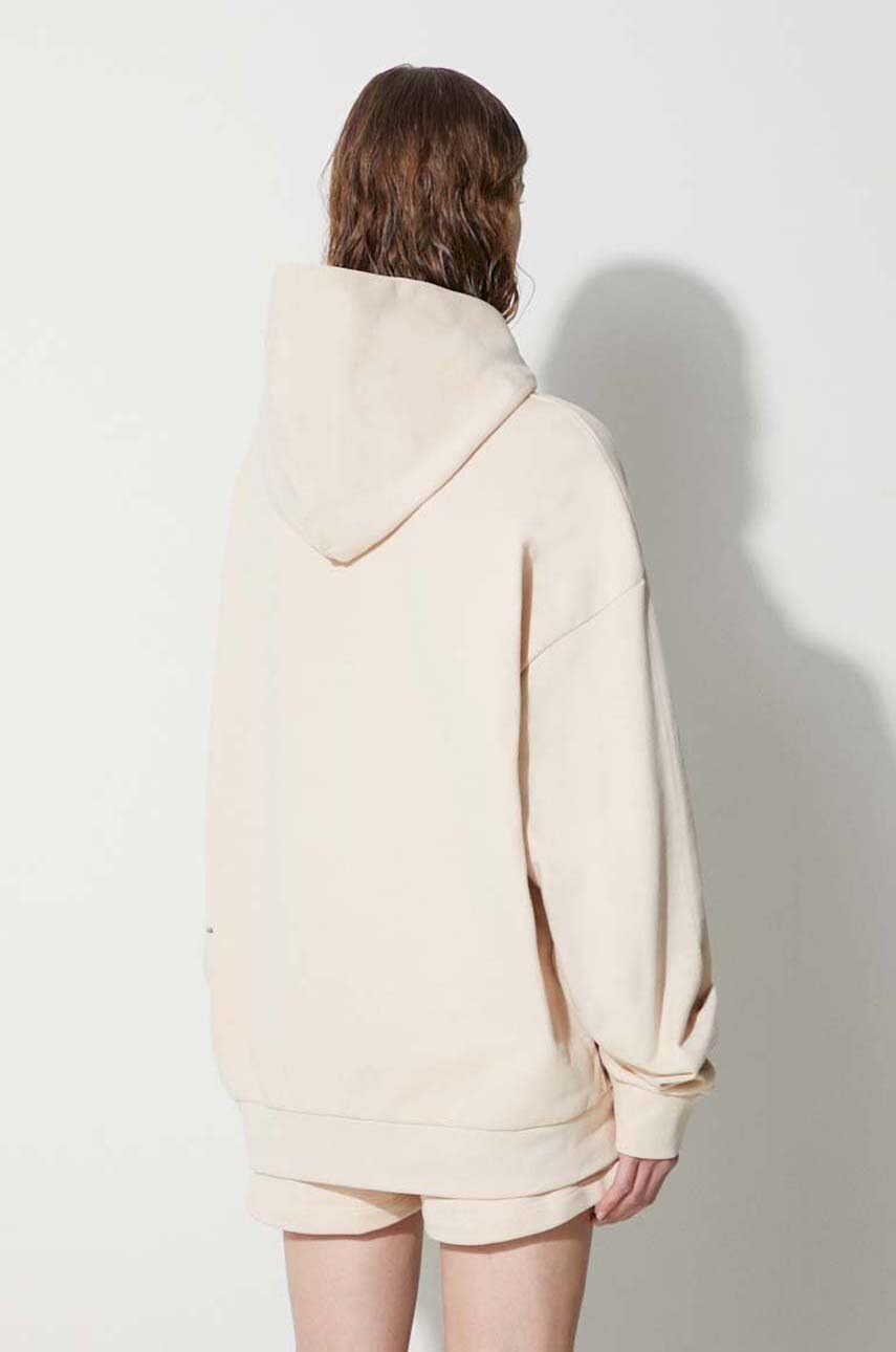 Pangaia bluza bawełniana kolor beżowy z kapturem z nadrukiem