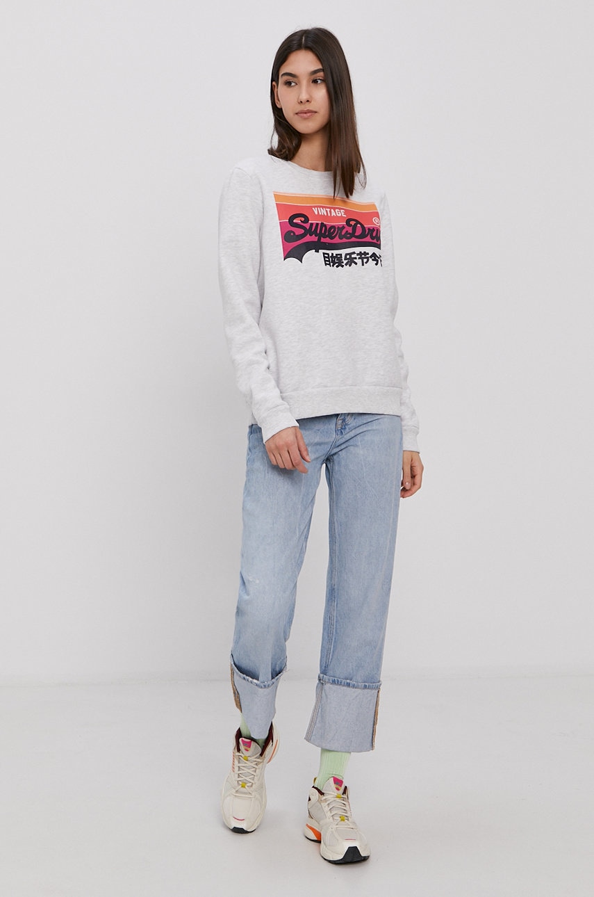 - Miękko wyściełany model. - Prosty fason. - Długi rękaw. - Okrągły dekolt. - Gruba, elastyczna dzianina. - Wykończenie ze ściągacza. - Model z nadrukiem. - Długość rękawa: 67 cm. - Długość: 64 cm. - Szerokość pod pachami: 57 cm. - Wymiary podane dla rozmiaru: S.