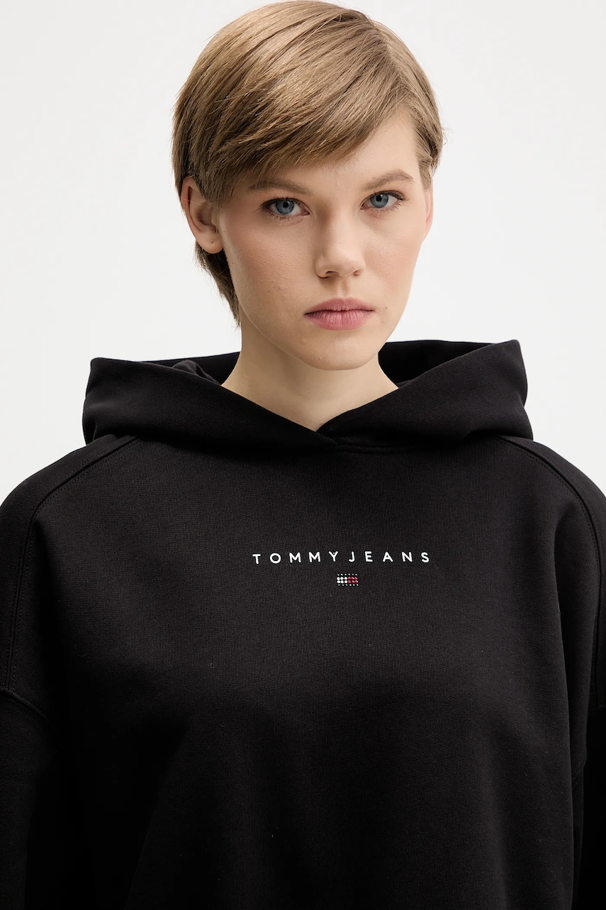 Tommy Jeans bluza bawełniana damska kolor czarny z kapturem z nadrukiem DW0DW21607