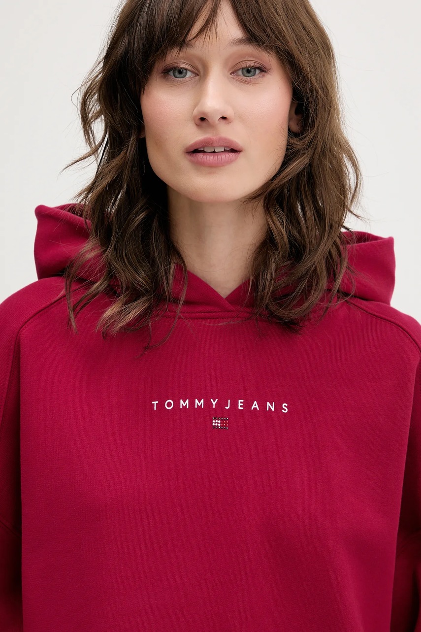 Tommy Jeans bluza bawełniana damska kolor różowy z kapturem z nadrukiem DW0DW21607