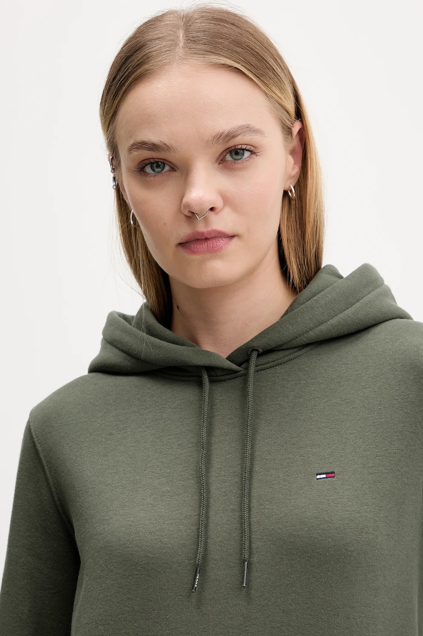 Tommy Jeans bluza damska kolor zielony z kapturem gładka DW0DW19958