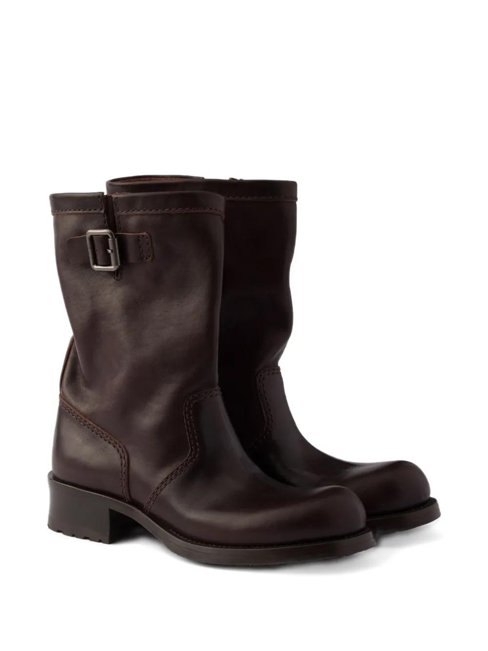 Prada 40mm logo-buckle leather boots - Brown