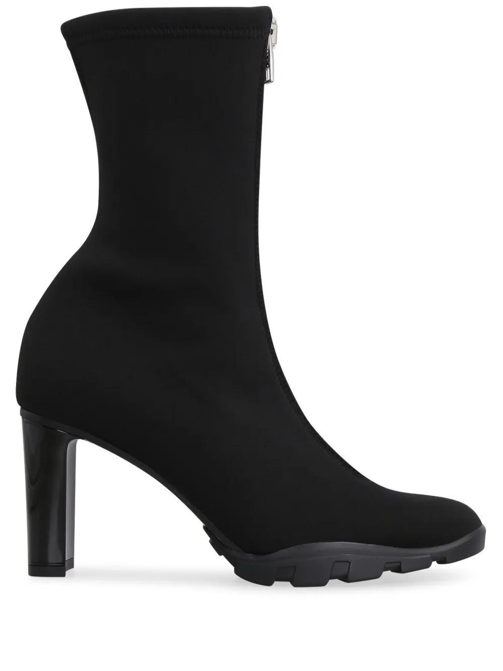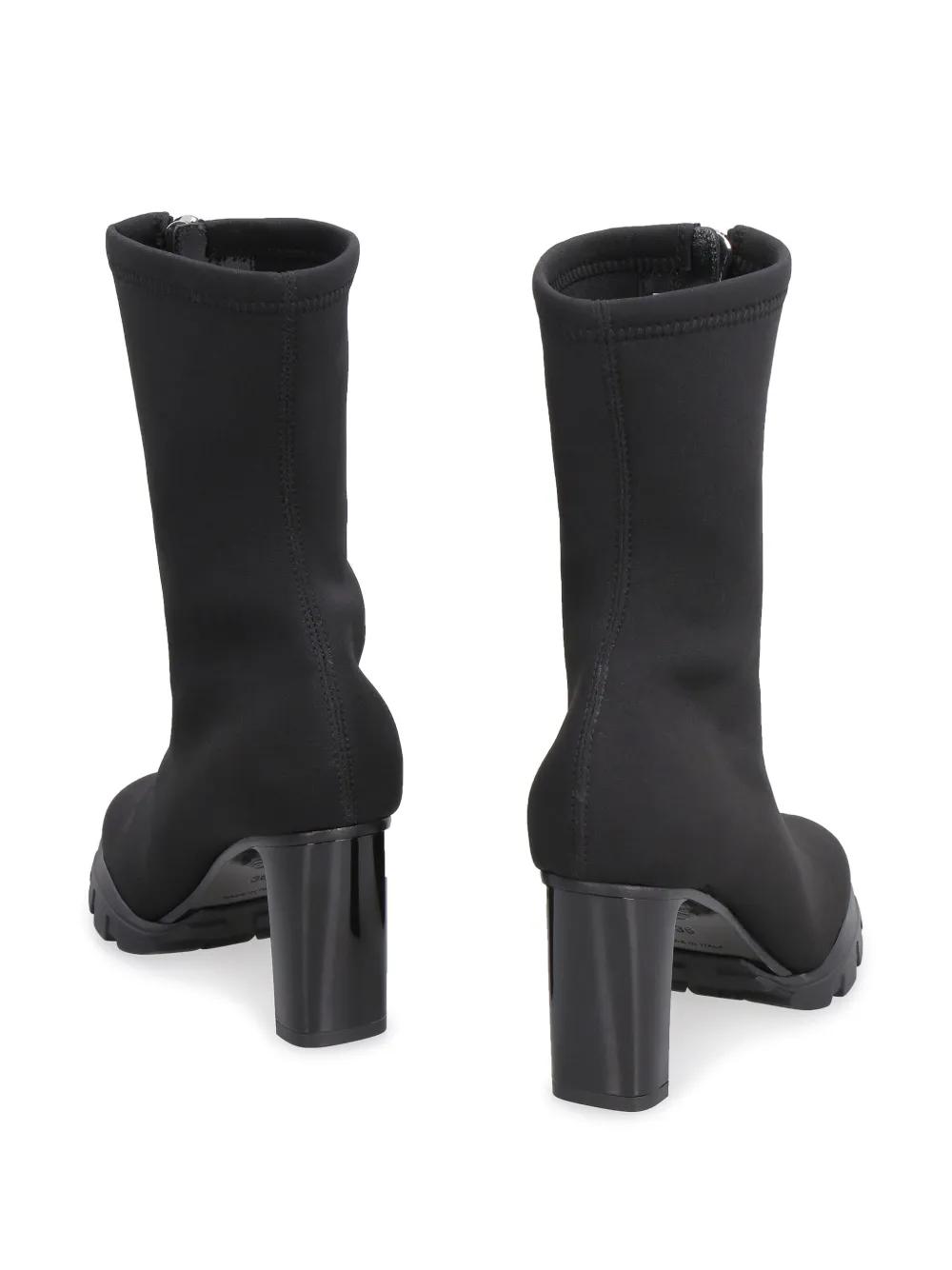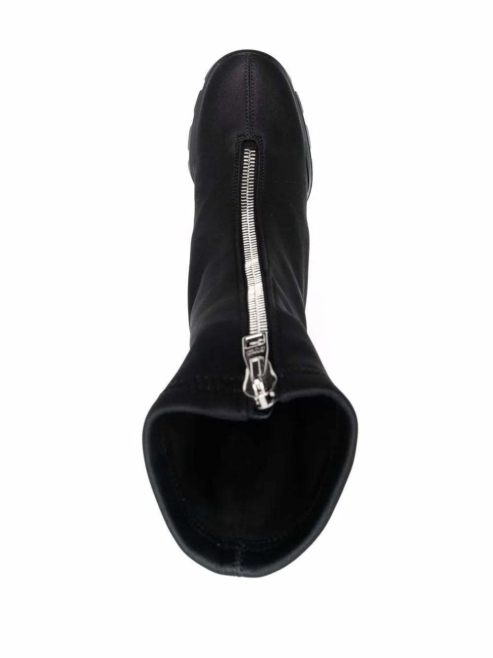 black leather ankle-length front zip fastening round toe branded insole high block heel