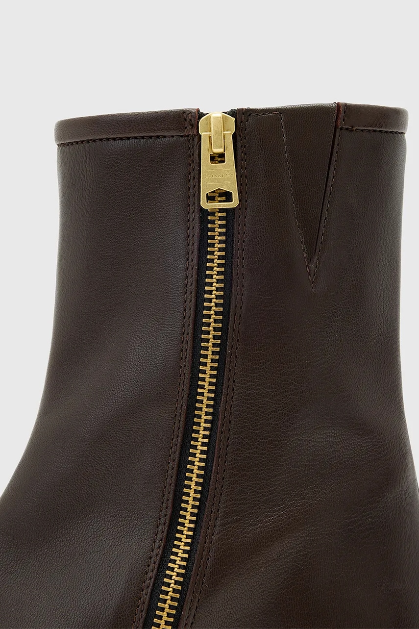 AllSaints botki skórzane Avril Boot damskie kolor brązowy na słupku W096FC