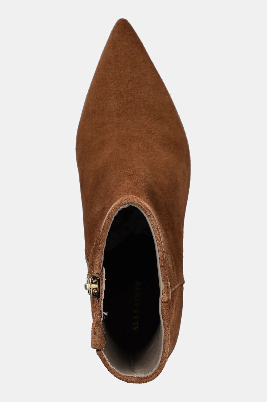 AllSaints botki zamszowe Vivian Suede Boot damskie kolor brązowy na szpilce W009FD