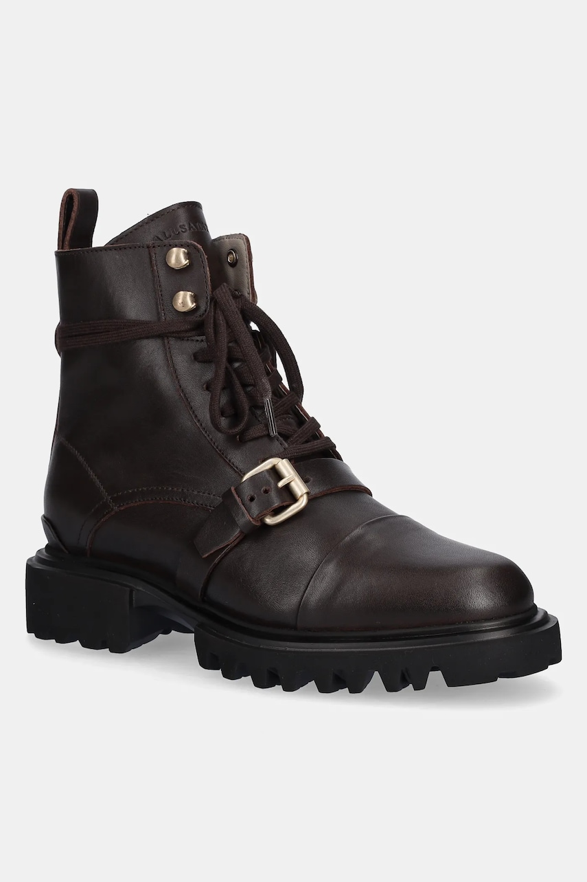 AllSaints workery skórzane Tori Boot damskie kolor brązowy na płaskim obcasie W119FB