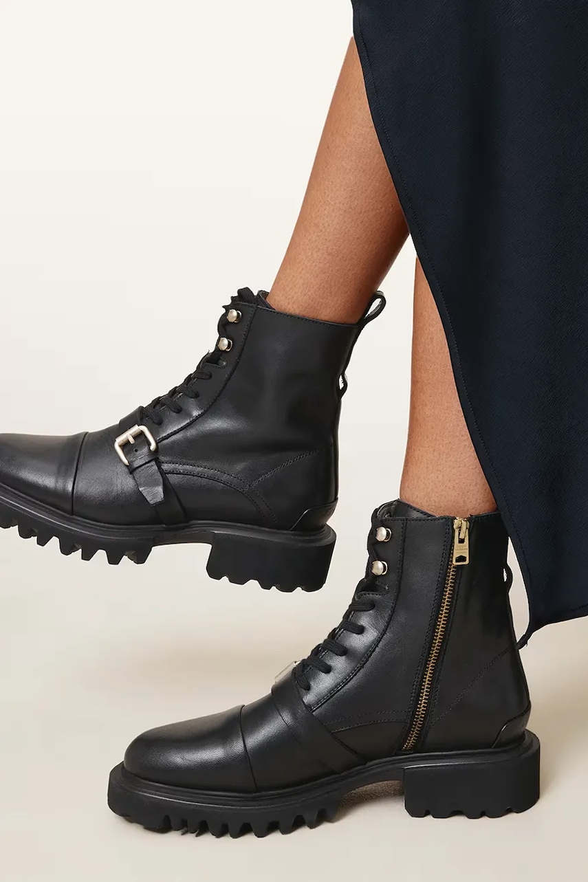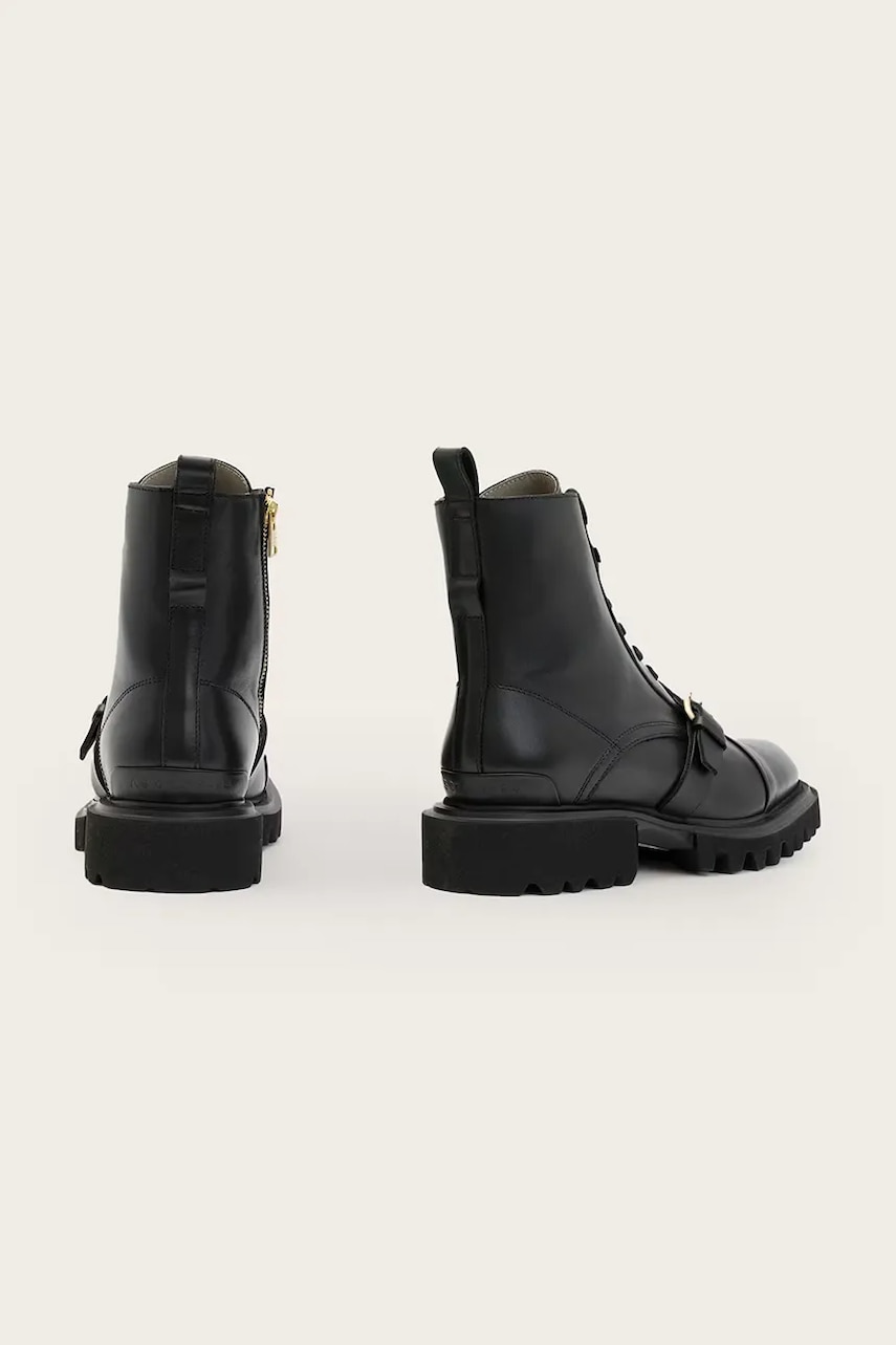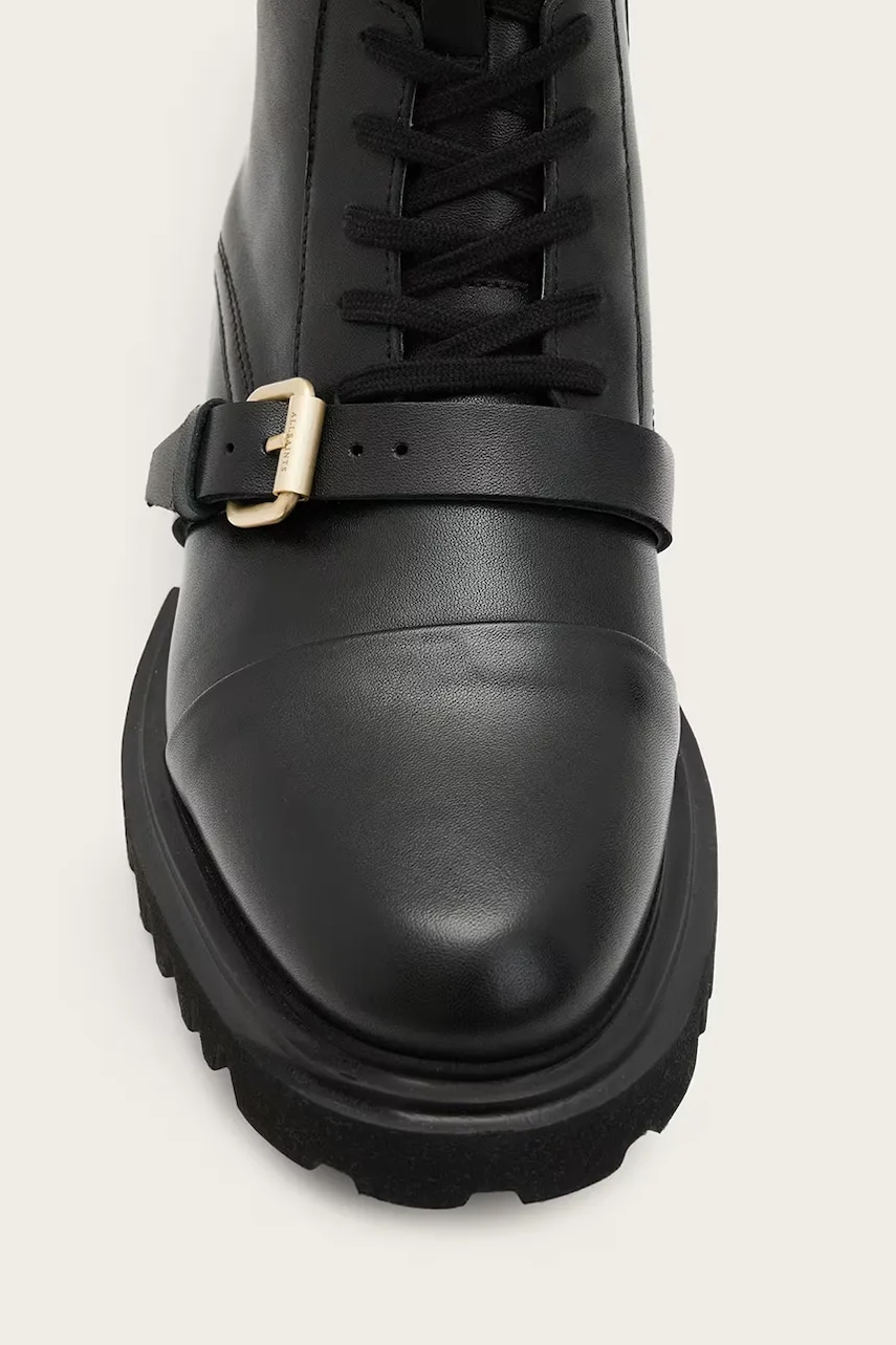 AllSaints workery skórzane Tori Boot damskie kolor czarny na płaskim obcasie W119FB