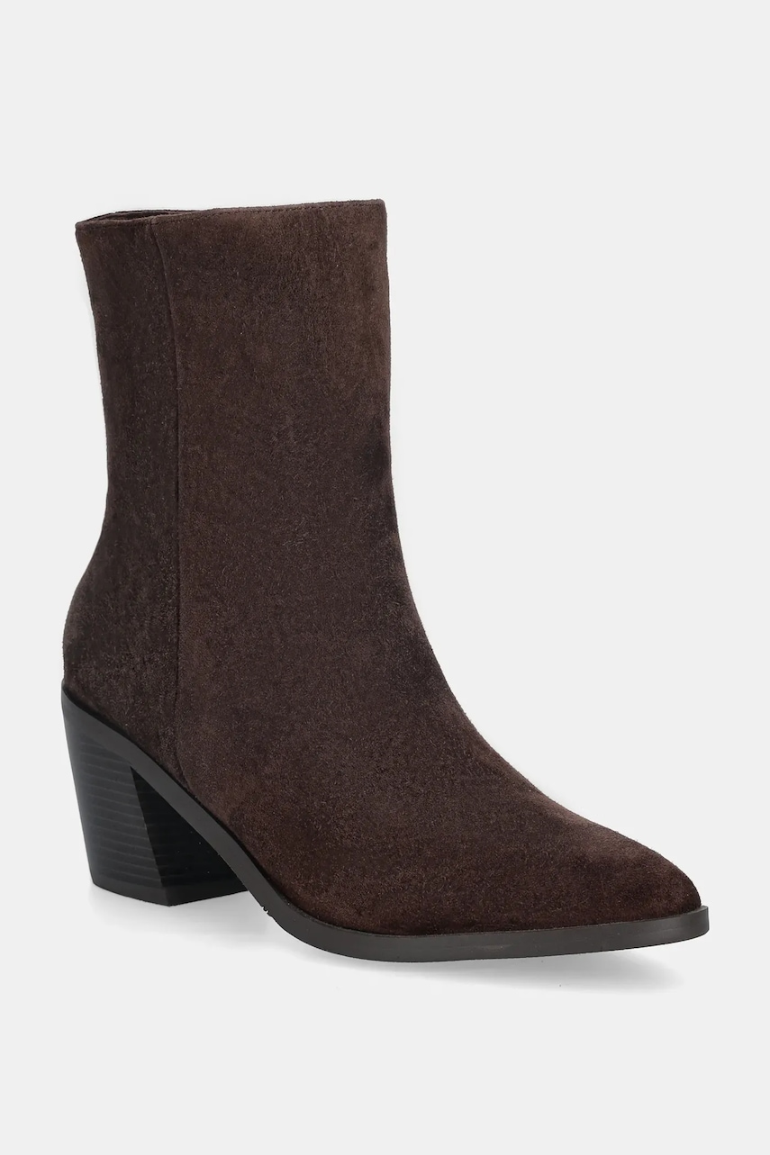 Answear.LAB botki zamszowe kolor brązowy na słupku