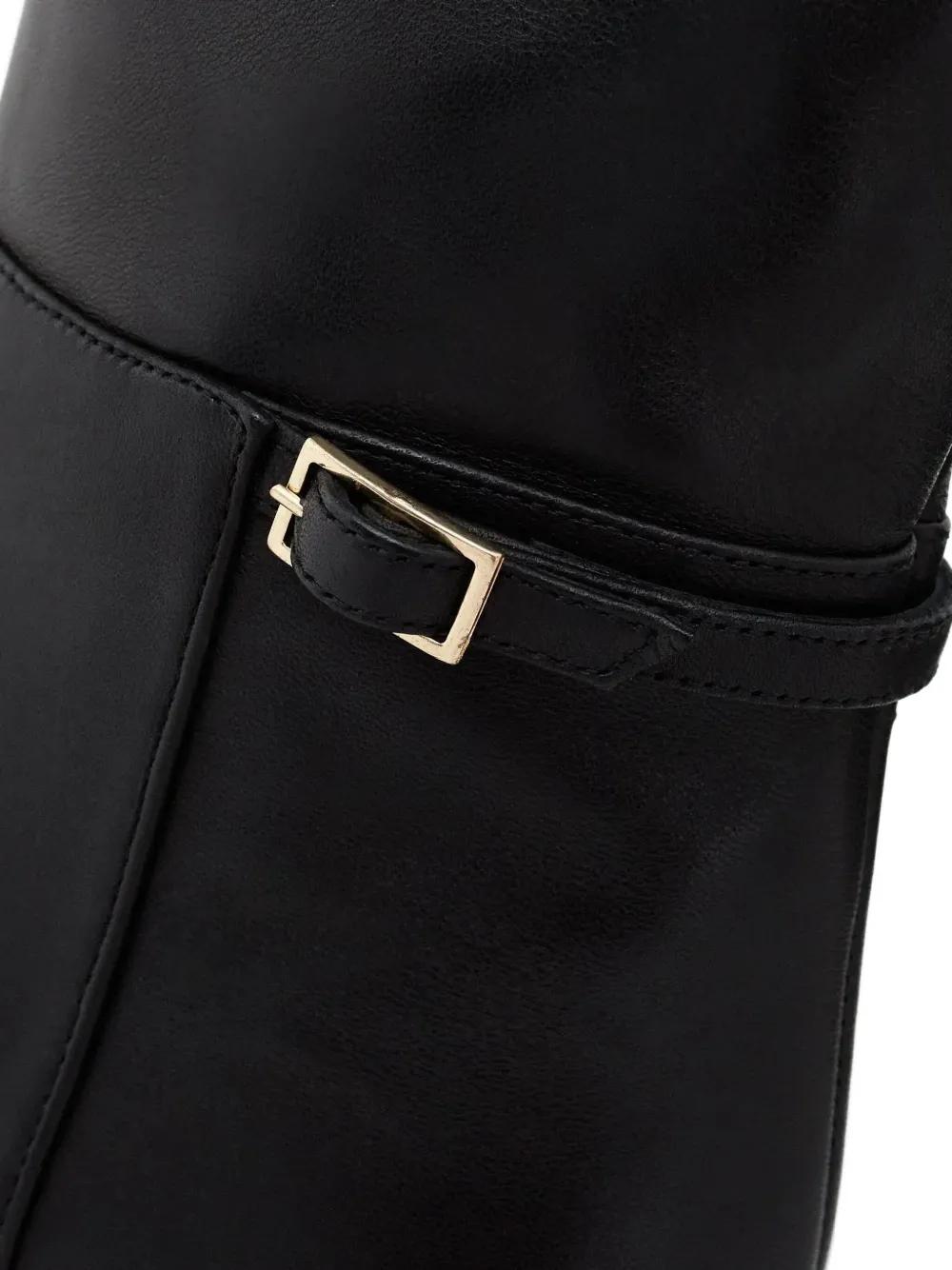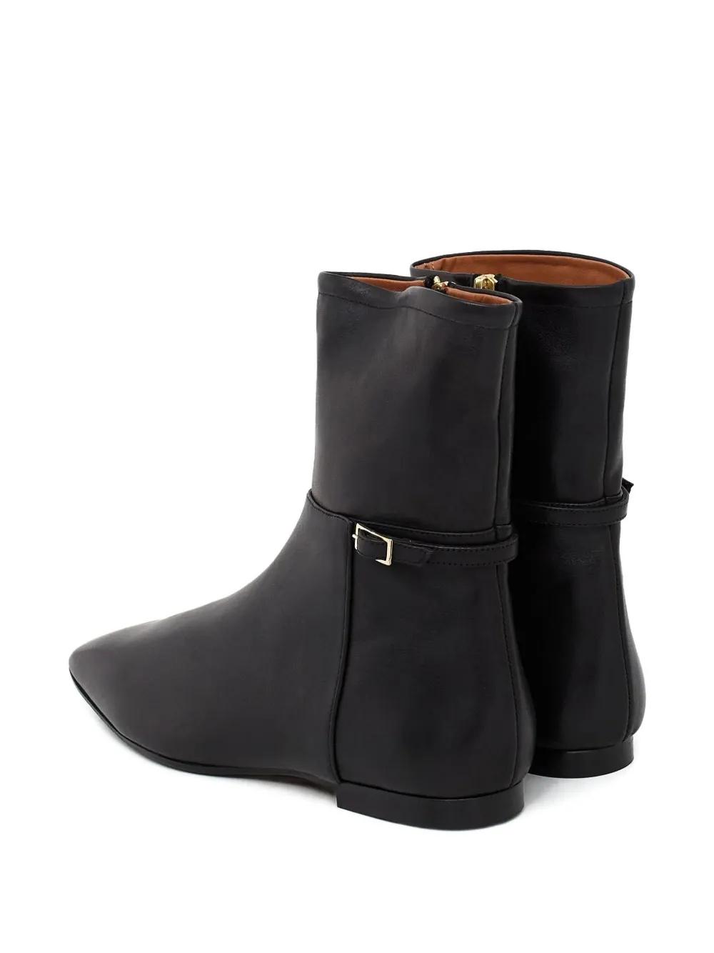 black ankle height strap detail gold-tone buckle pointed toe low heel
