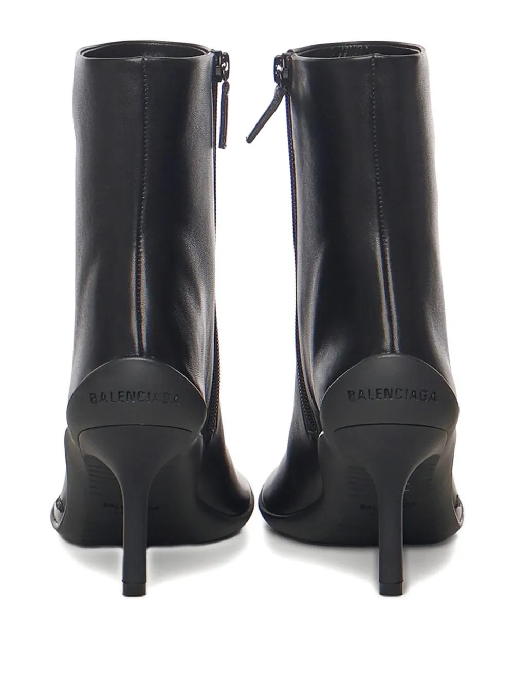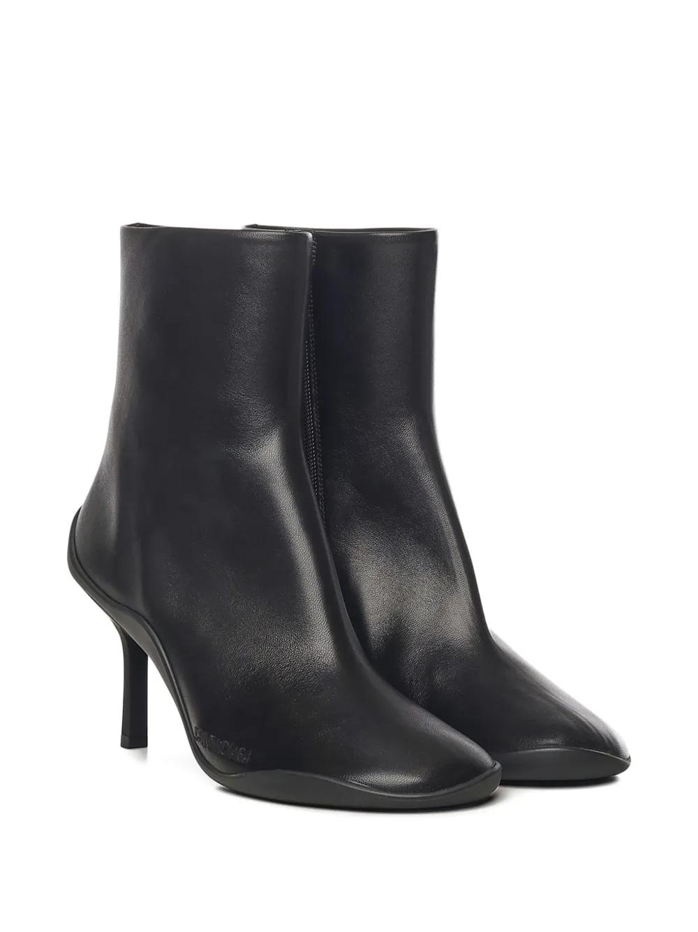 black square toe stiletto heel zip fastening logo detail sheepskin
