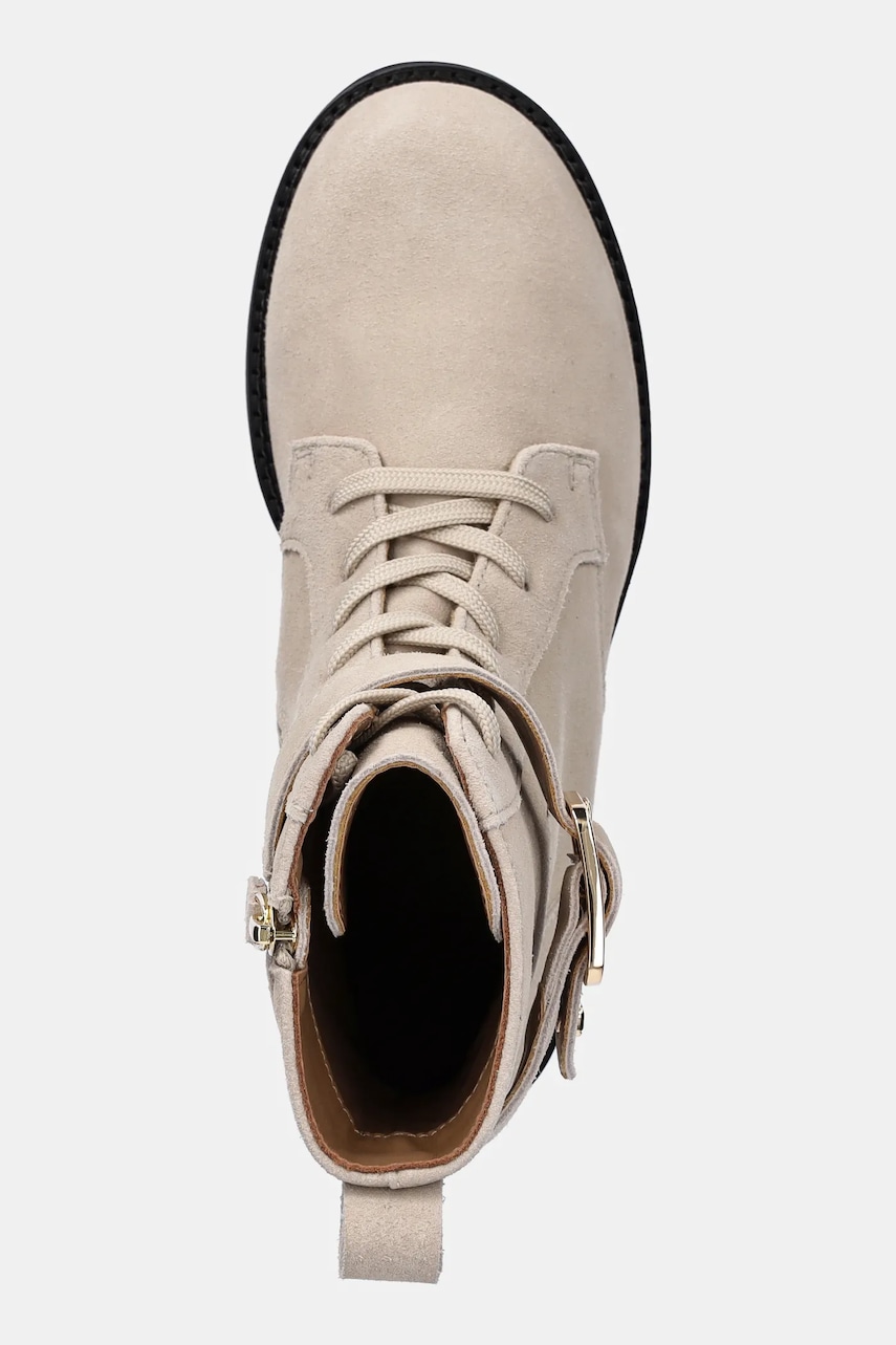 BOSS botki zamszowe Eleri damskie kolor beżowy na płaskim obcasie 50552774
