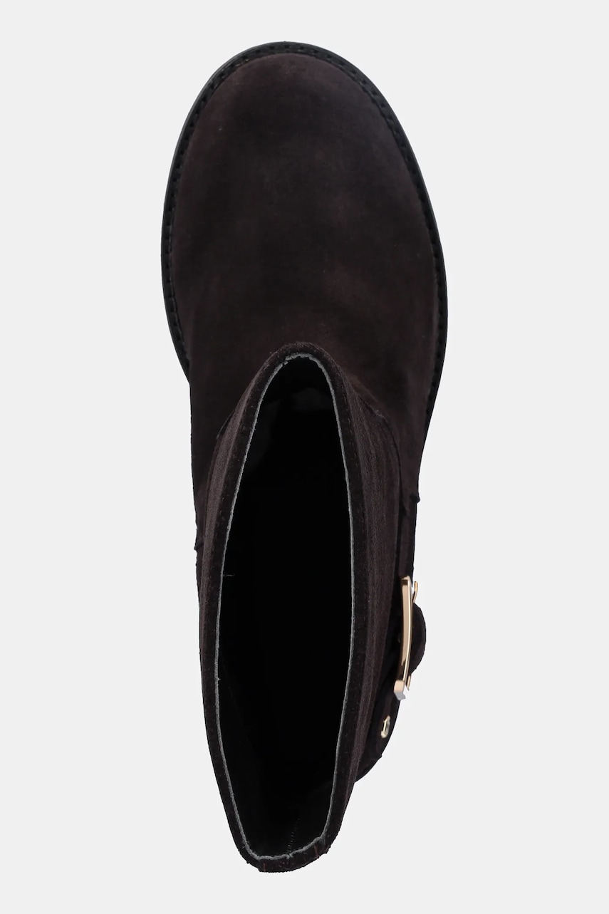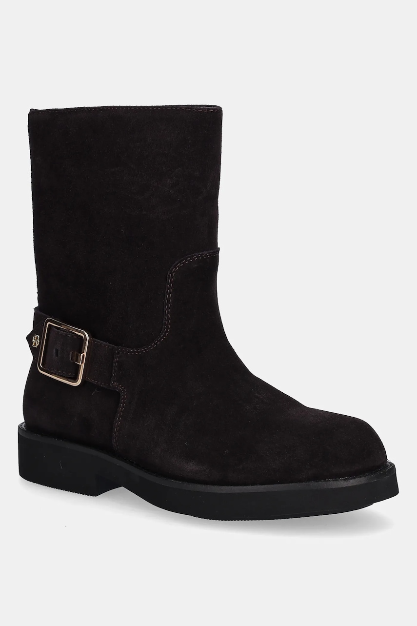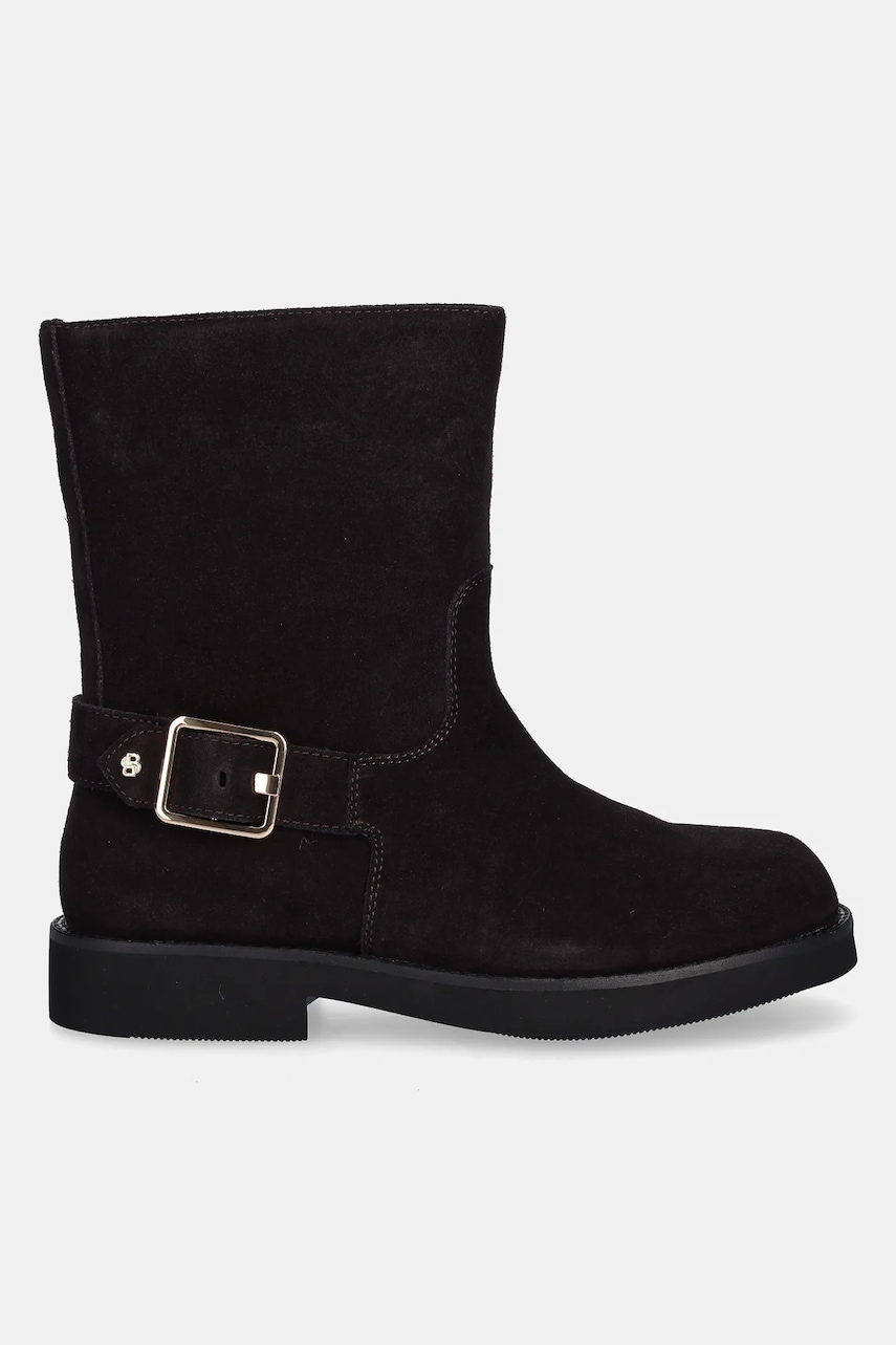 BOSS botki zamszowe Eleri damskie kolor brązowy na płaskim obcasie 50552755