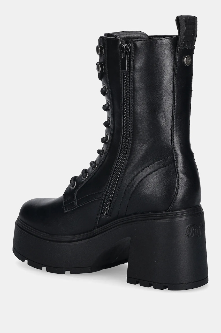 Buffalo botki Mila Lace Up Mid damskie kolor czarny na słupku 1622615-BLK