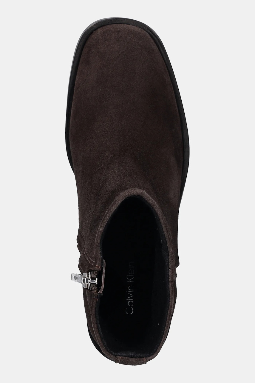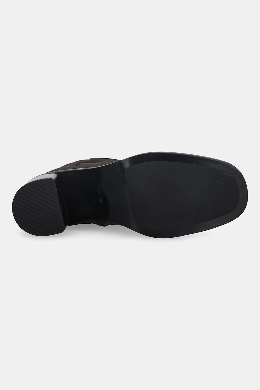 Calvin Klein botki zamszowe BLOCK HEEL ZIP BOOT SUE damskie kolor brązowy na słupku HW0HW02592