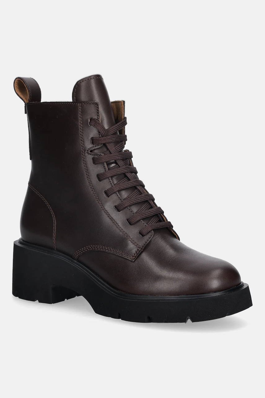 Camper botki skórzane Milah damskie kolor brązowy na płaskim obcasie K400577-013
