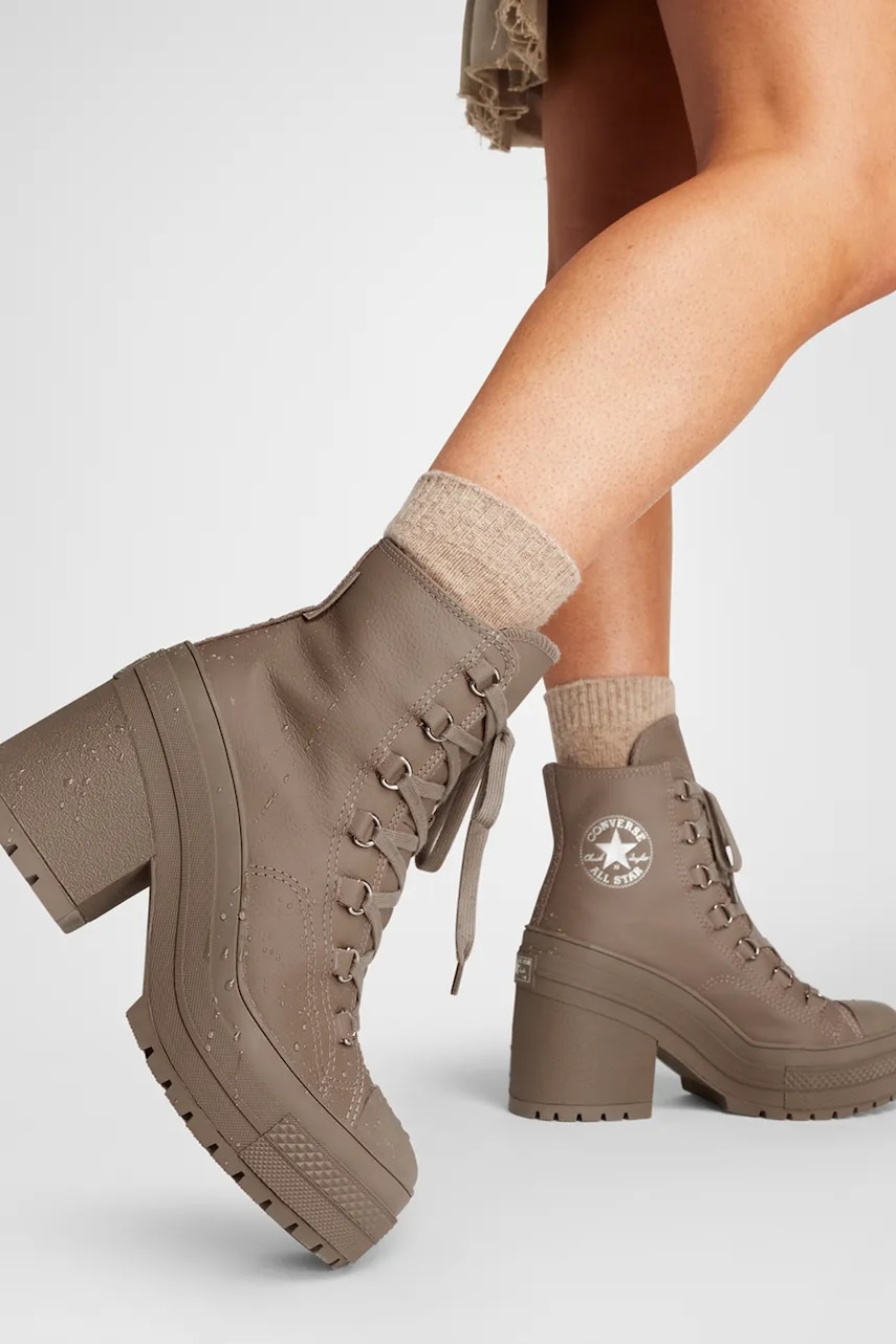 Converse botki skórzane Chuck 70 De Luxe Heel damskie kolor brązowy na słupku lekko ocieplone A13064C
