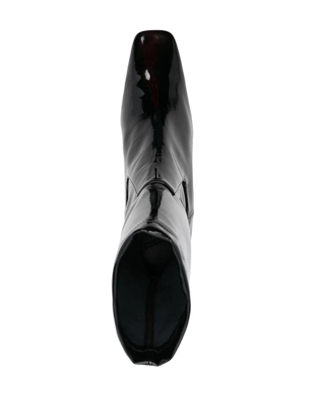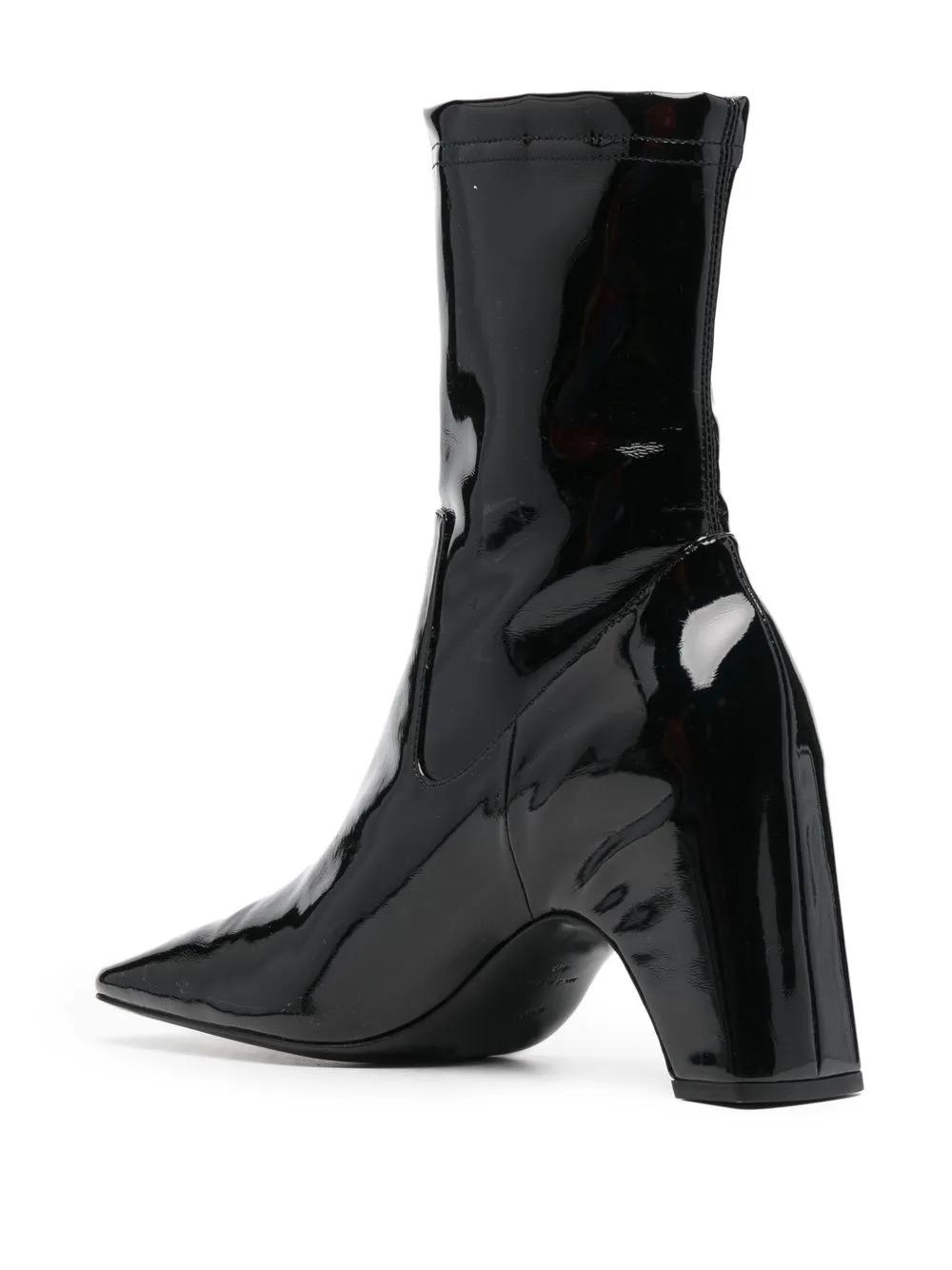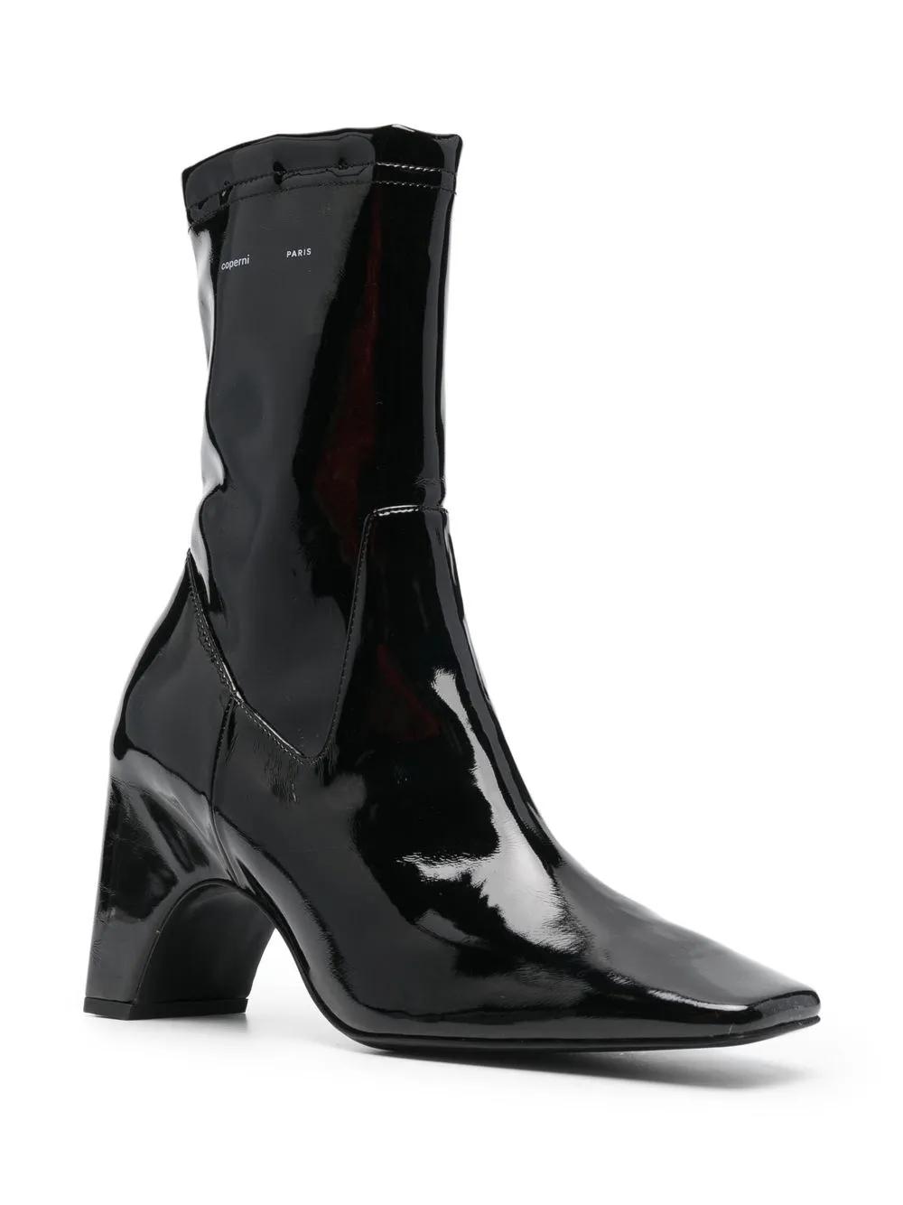 jet black calf leather high-shine finish square toe ankle-length mid heel