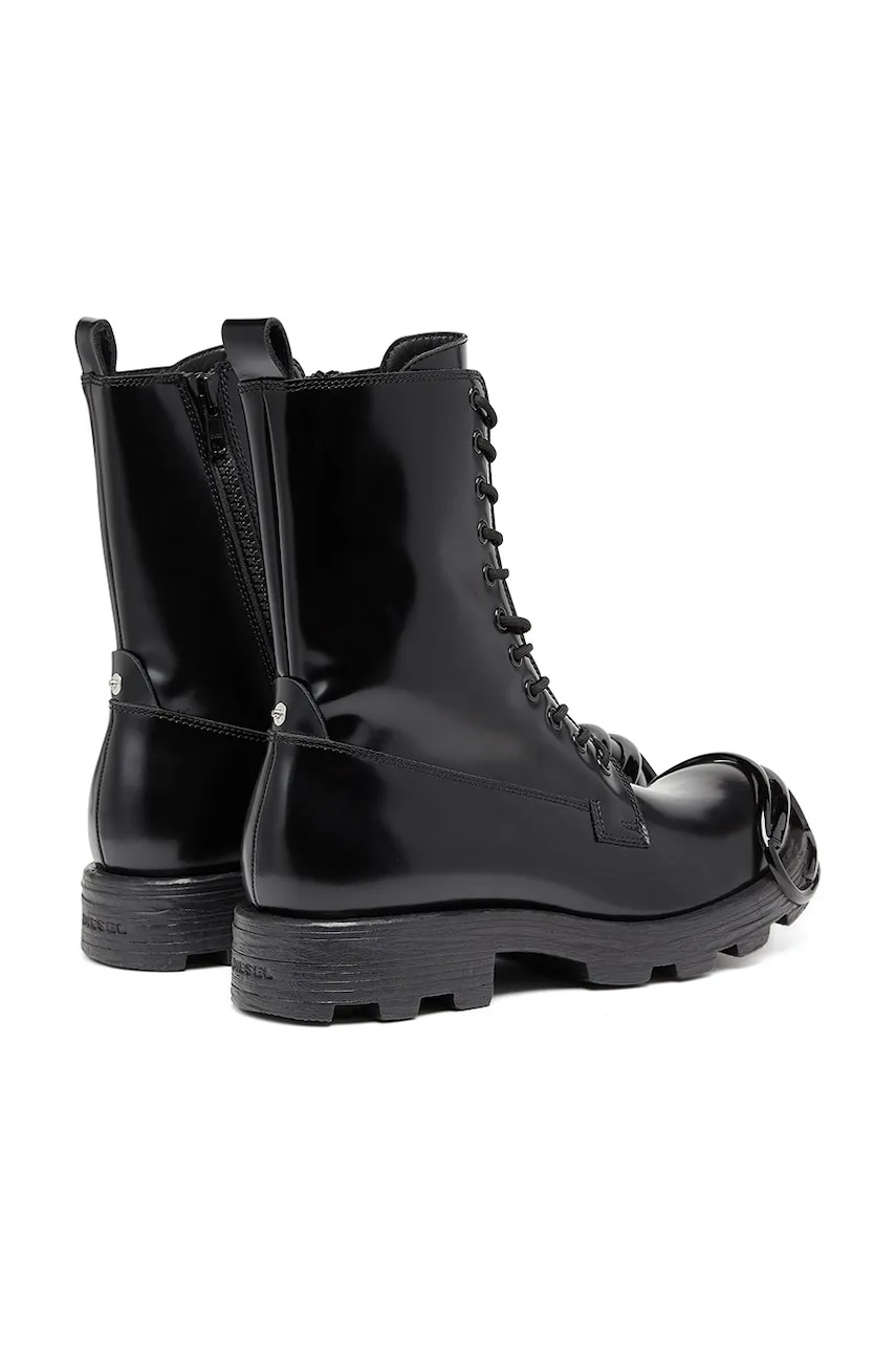 Diesel botki skórzane D-Hammer Bt D kolor czarny na płaskim obcasie Y03228-P4471-T8013