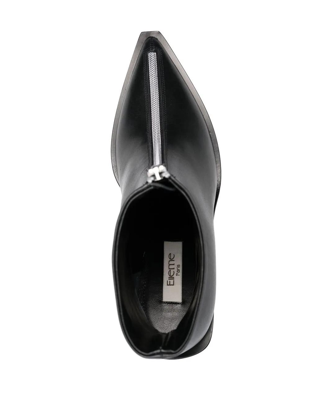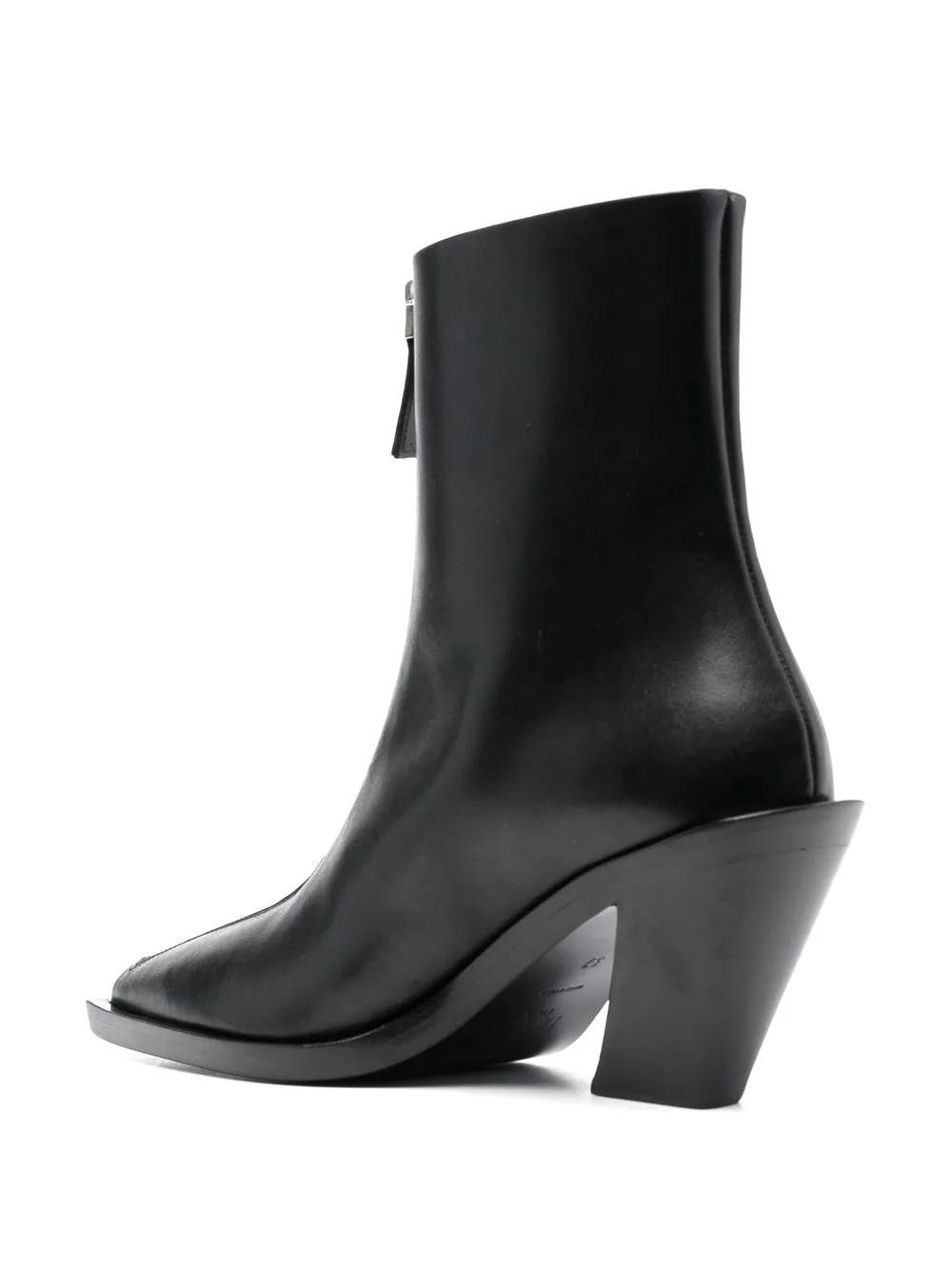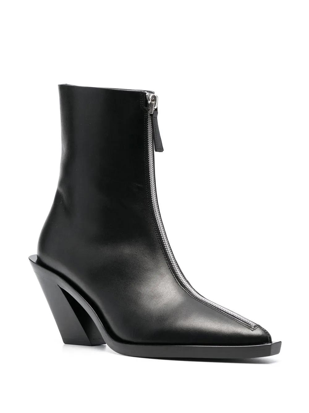 black calf leather pointed toe front zip fastening branded insole 85mm sculpted block heel