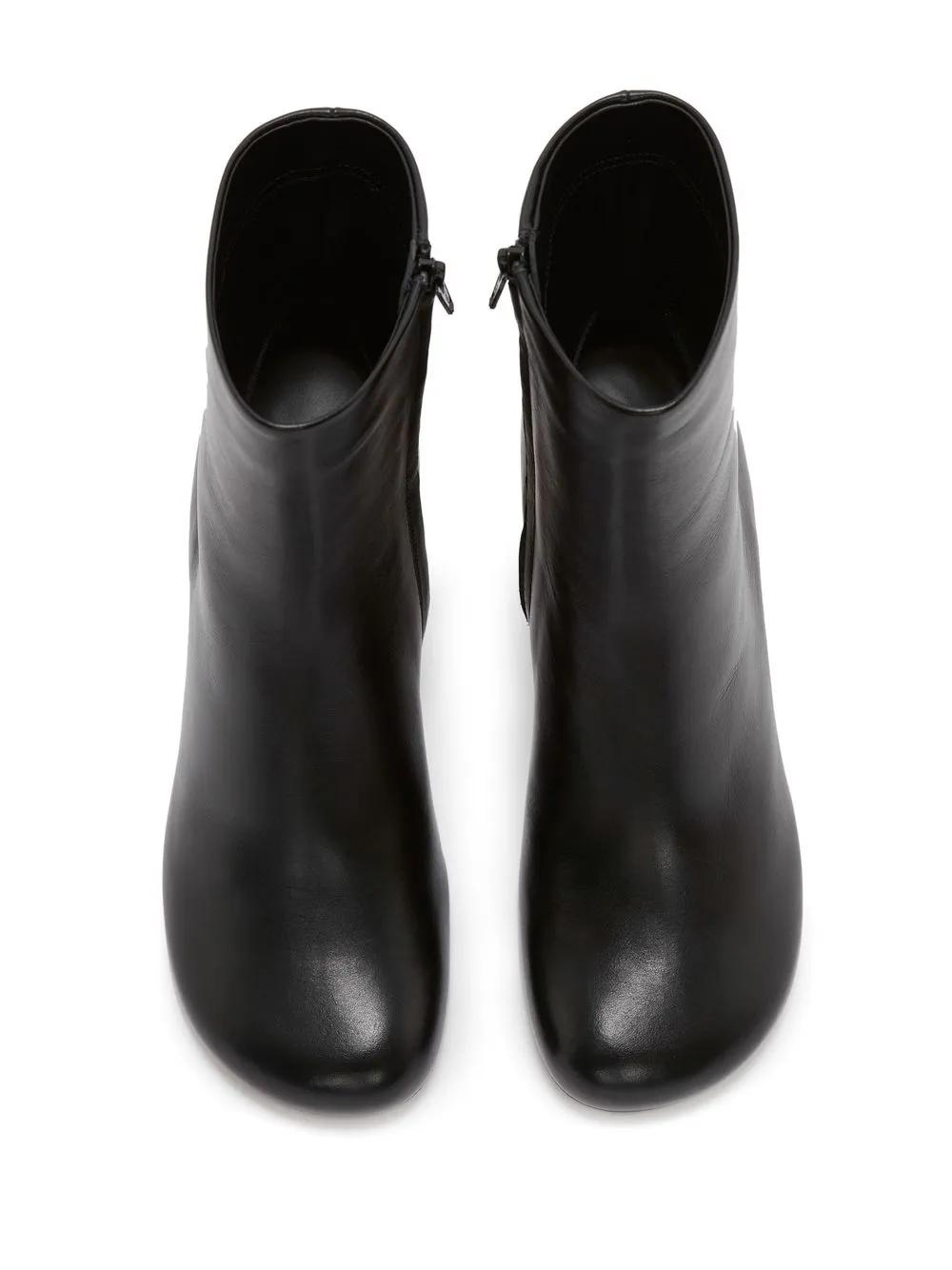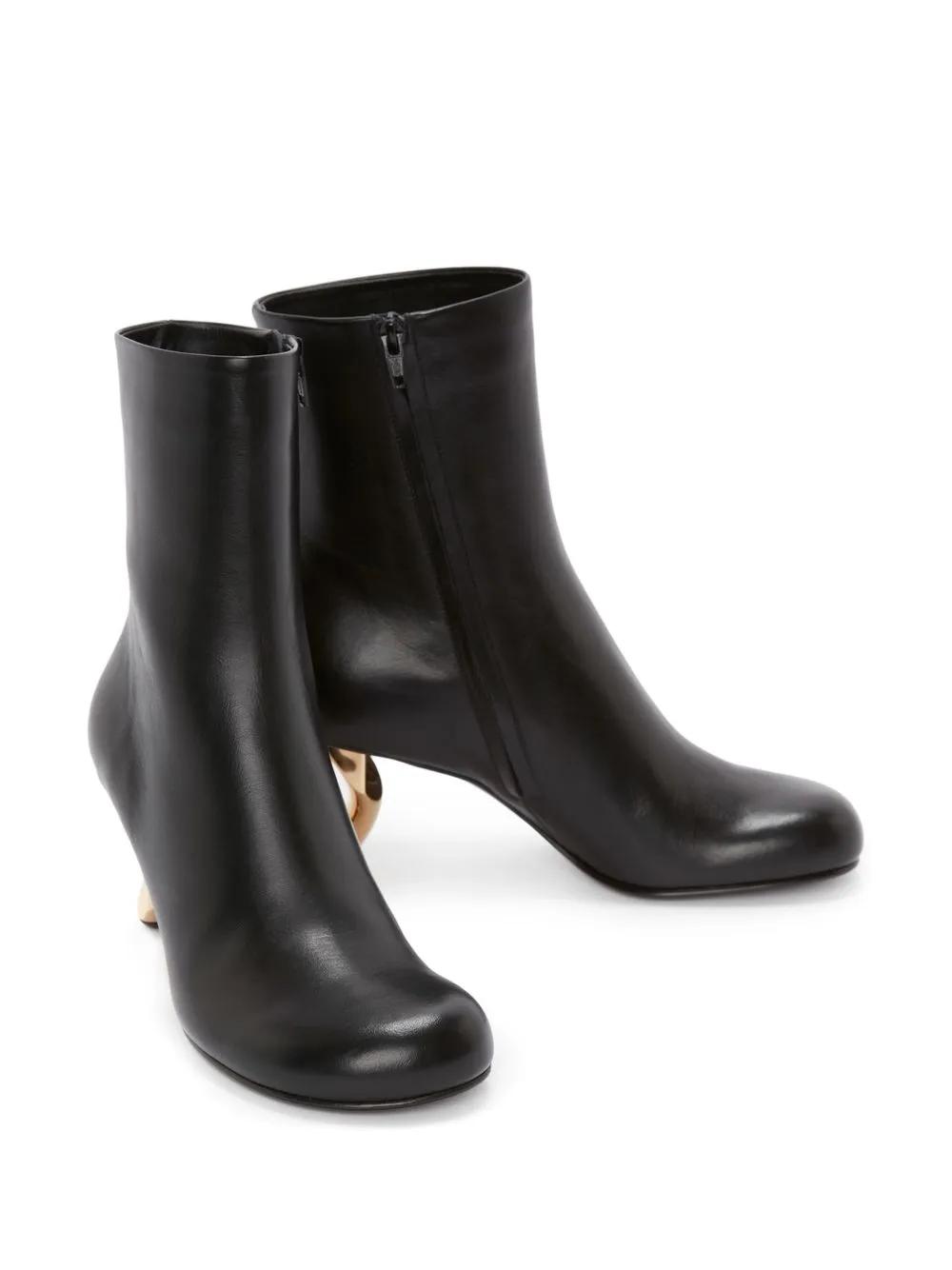 black calfskin chain-link detailing round toe side zip fastening branded heel counter mid heel