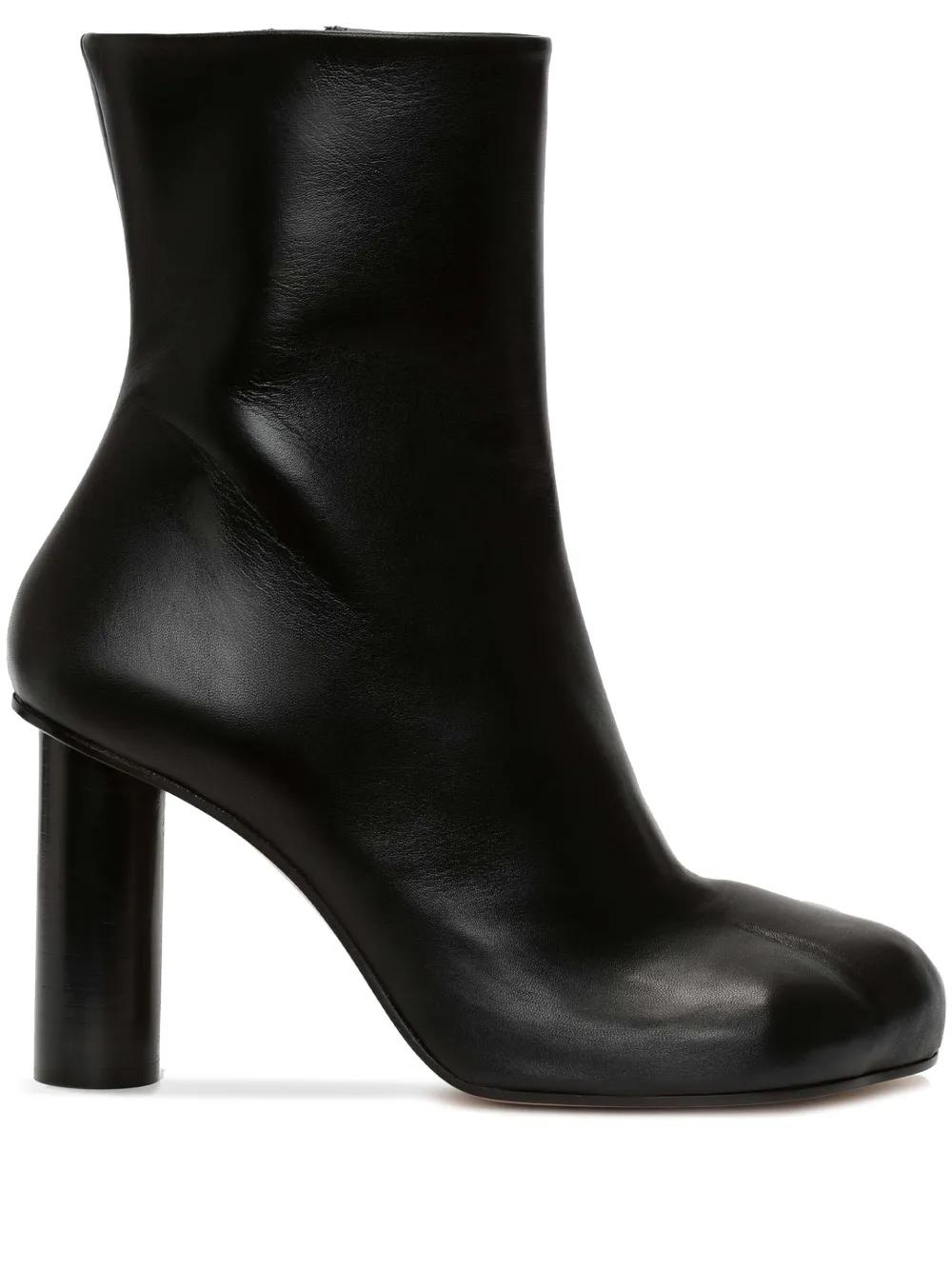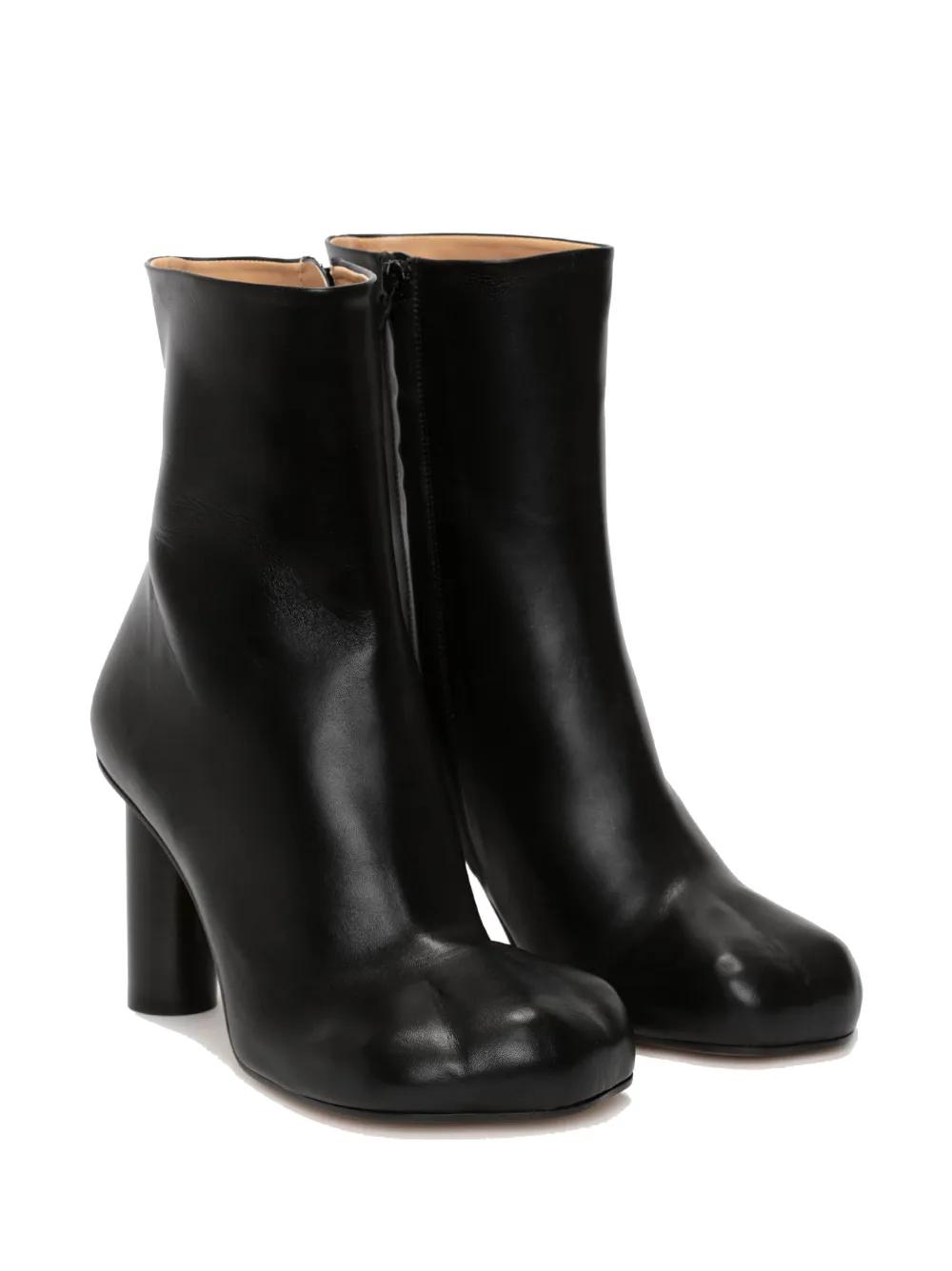 black calf leather/lambskin smoothing finish ankle-length side zip fastening round toe branded insole block heel