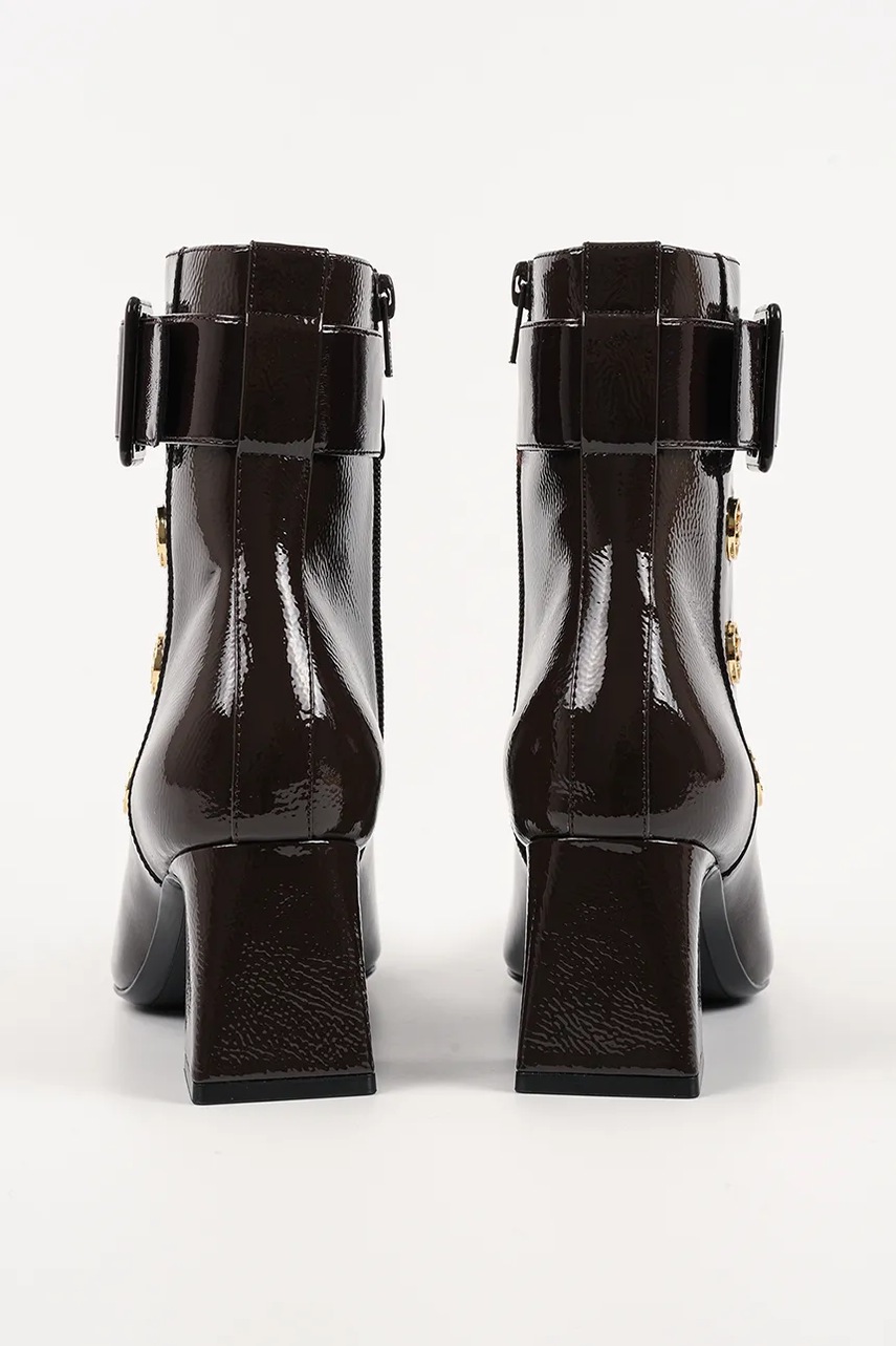 - Zwężany, usztywniony nosek. - Usztywniony zapiętek zapewnia doskonałe wsparcie kostki i pięty. - Skórzana wkładka jest komfortowa dla stopy i zapobiega odparzeniom, otarciom oraz pojawianiu się nieprzyjemnego zapachu. - Miękka wyściółka, wykonana z materiału tekstylnego, zapobiega podrażnieniom i zapewnia wysoki komfort noszenia. - Model na obcasie typu słupek. - Boczne zapięcie na suwak.