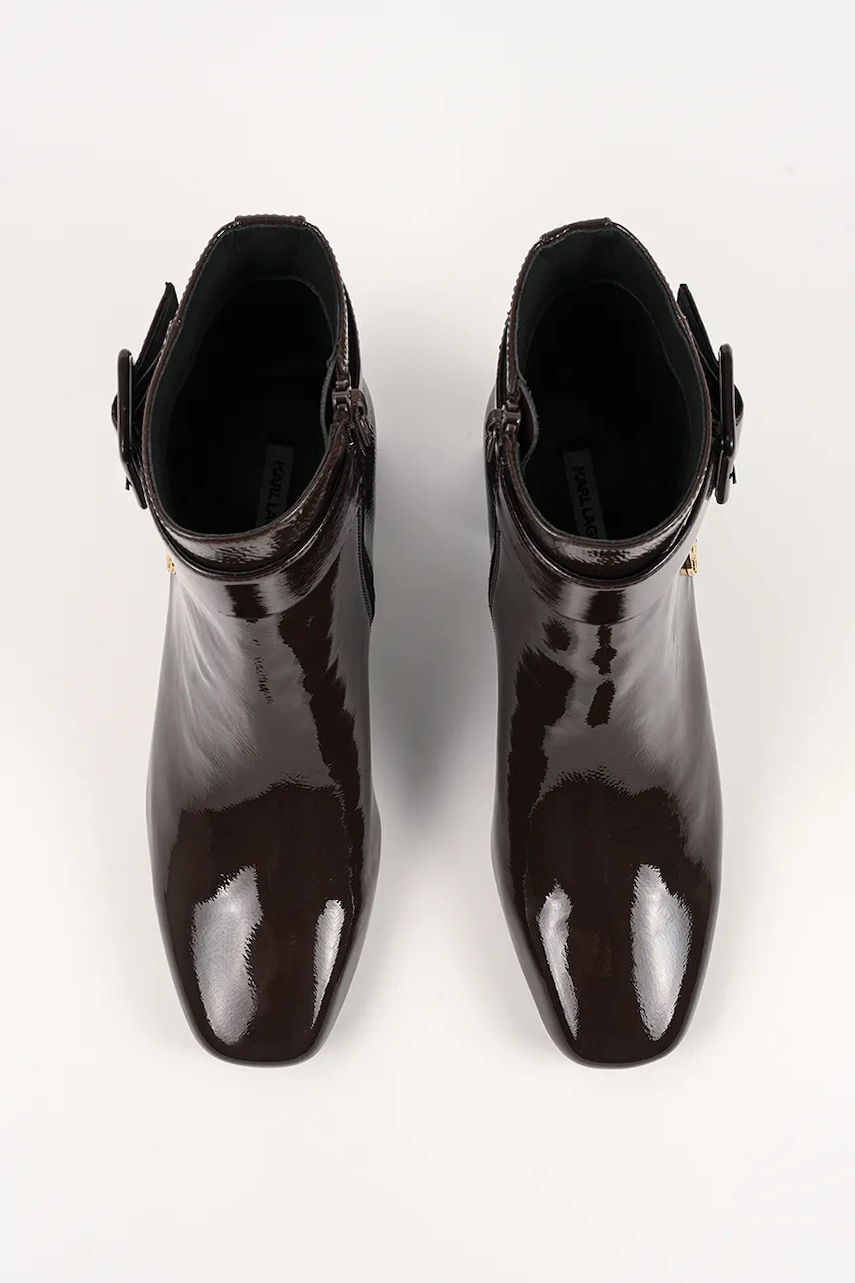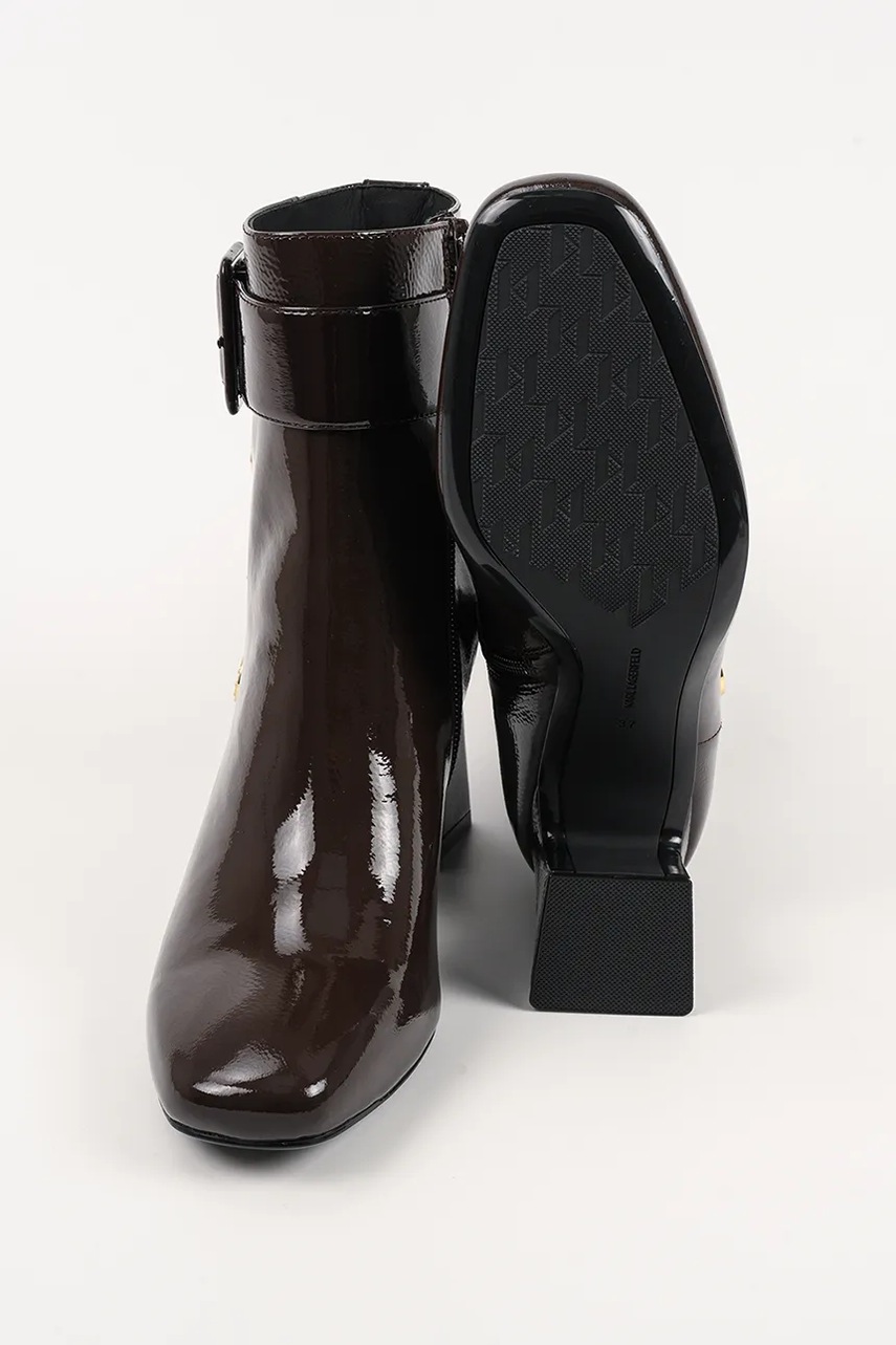 Karl Lagerfeld botki skórzane BEATA damskie kolor brązowy na słupku KL31455A