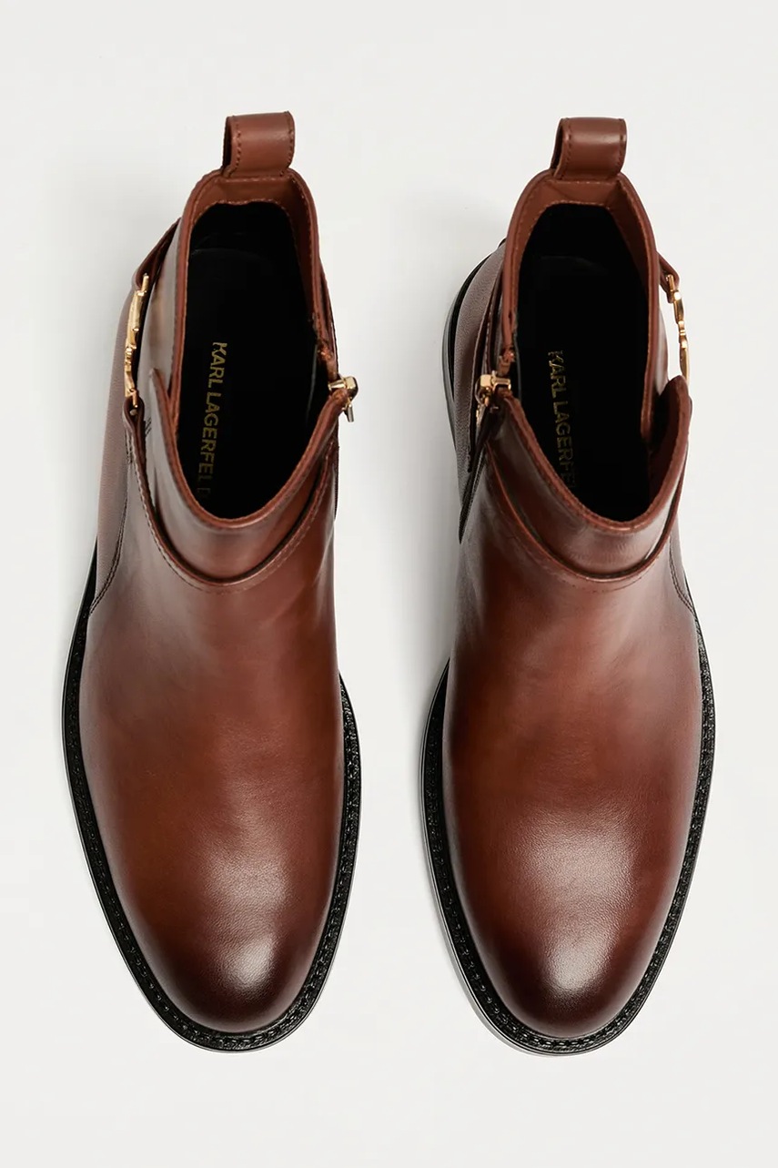 Karl Lagerfeld botki skórzane BLAKE damskie kolor brązowy na płaskim obcasie KL41444