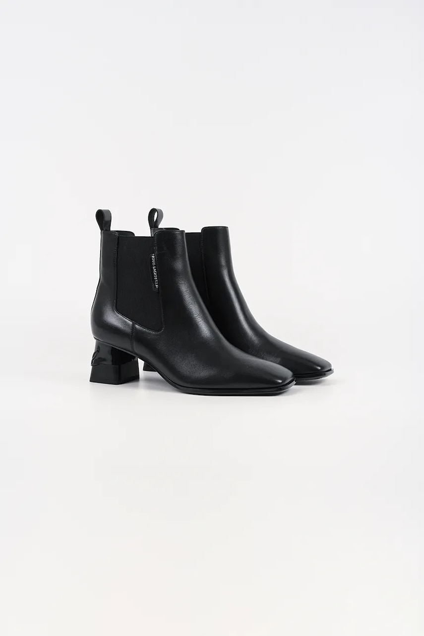 Karl Lagerfeld botki skórzane KAYLA damskie kolor czarny na słupku lekko ocieplone KL35440