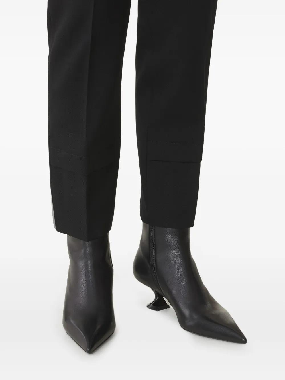 black leather pointed toe sculpted heel side zip fastening ankle height