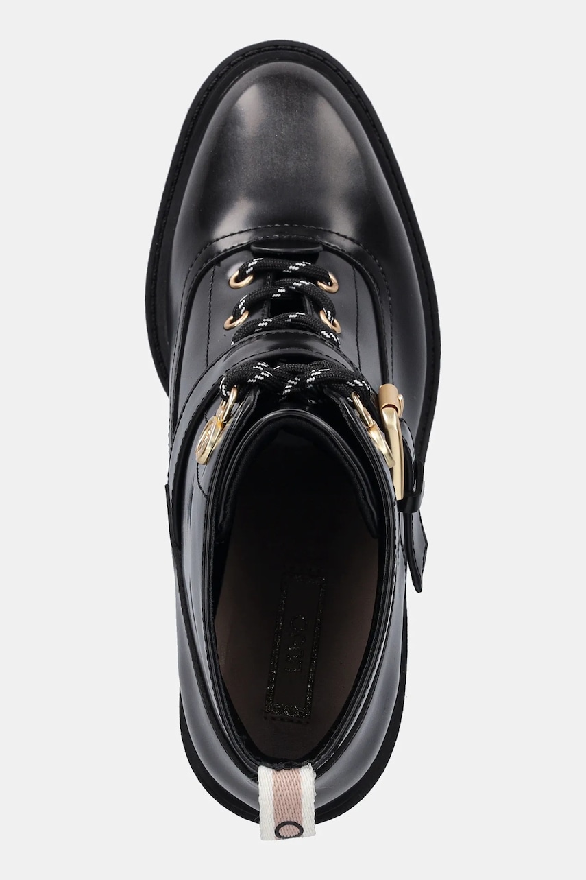Uwaga: oryginalna rozmiarówka produktów tej marki jest rozmiarówką włoską. Informujemy, że rozmiary na metkach mogą różnić się od zamawianych ze względu na zastosowany przelicznik. - Okrągły, usztywniony nosek. - Mocno usztywniony zapiętek stabilizuje piętę i utrzymuje stopę w bucie, tak aby nie wysuwała się podczas ruchu. - Model na obcasie typu słupek. - Pętelka z tyłu ułatwia zakładanie oraz pomaga w zdejmowaniu butów. - Podwyższona cholewka pomaga usztywnić nogę w kostce, co chroni przed niekontrolowanymi ruchami podczas poruszania się po nierównej nawierzchni. - Klasyczne sznurowanie umożliwia indywidualne dopasowanie. - Skórzana wkładka jest komfortowa dla stopy i zapobiega odparzeniom, otarciom oraz pojawianiu się nieprzyjemnego zapachu. - Gumowa podeszwa zewnętrzna jest wytrzymała i odporna na uszkodzenia. - Wysokość obcasa: 10,5 cm. - Długość wkładki wynosi: 23 cm. - Wymiary podane dla rozmiaru: 37.